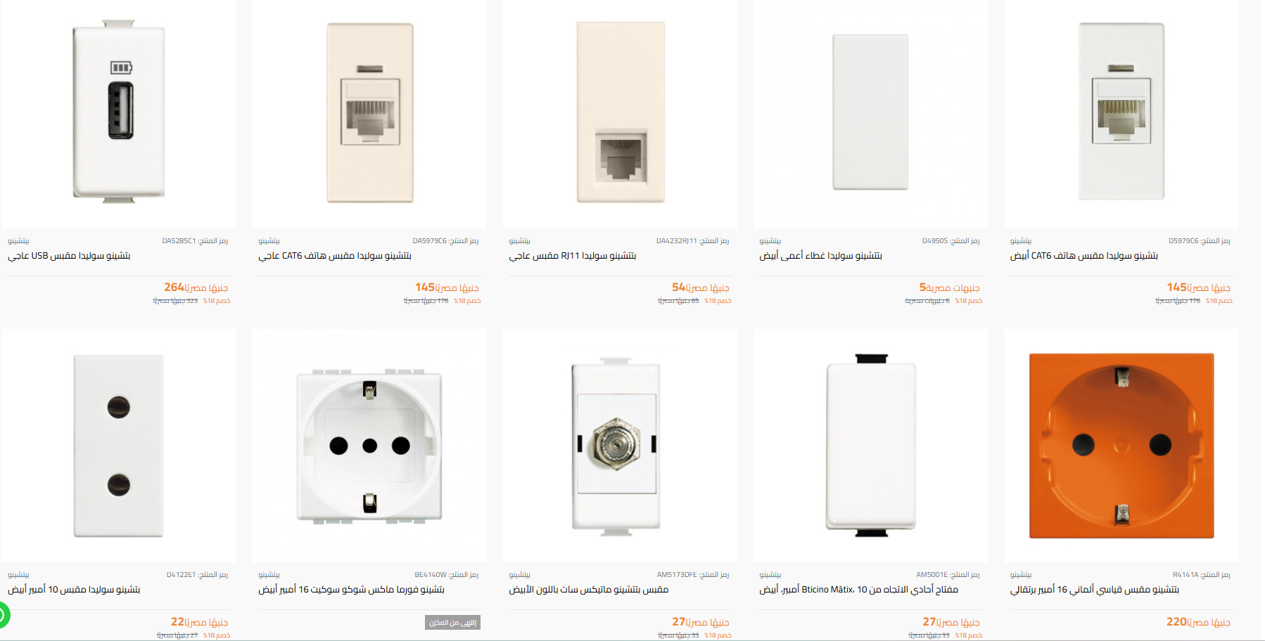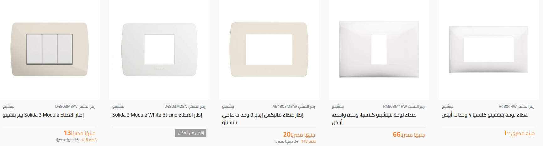 ووفقًا لأسعار متجر “ بتشينو ”، الموجود على موقع التسوق الإلكتروني “خاماتو”، وهو سوق إلكتروني شامل لجميع مواد البناء والتشطيب، فقد تراوحت أسعار الوشوش الكهربائية لشركة بتشينو ما بين 16 إلى 100 جنيه، وتراوحت أسعار المفاتيح الكهربائية من 5 إلى 264 جنيهًا، أما مفاتيح التكييفات فتبدأ من 200 إلى 237 جنيهًا.
