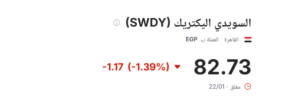 وتعتبر شركة السويدي إلكتريك أيضًا واحدة من أكبر المصنعين المحليين في السوق المصرية، تأسست عام 1938، ويعمل بها حوالي 17,000 موظف، وهي مقيدة بالبورصة المصرية، حيث يبلغ سعر السهم الواحد للشركة 82.73 جنيه، وفقًا لآخر تحديث عن موقع investing، في التوقيت 12:56 مساءً، بتاريخ 24 يناير 2025.