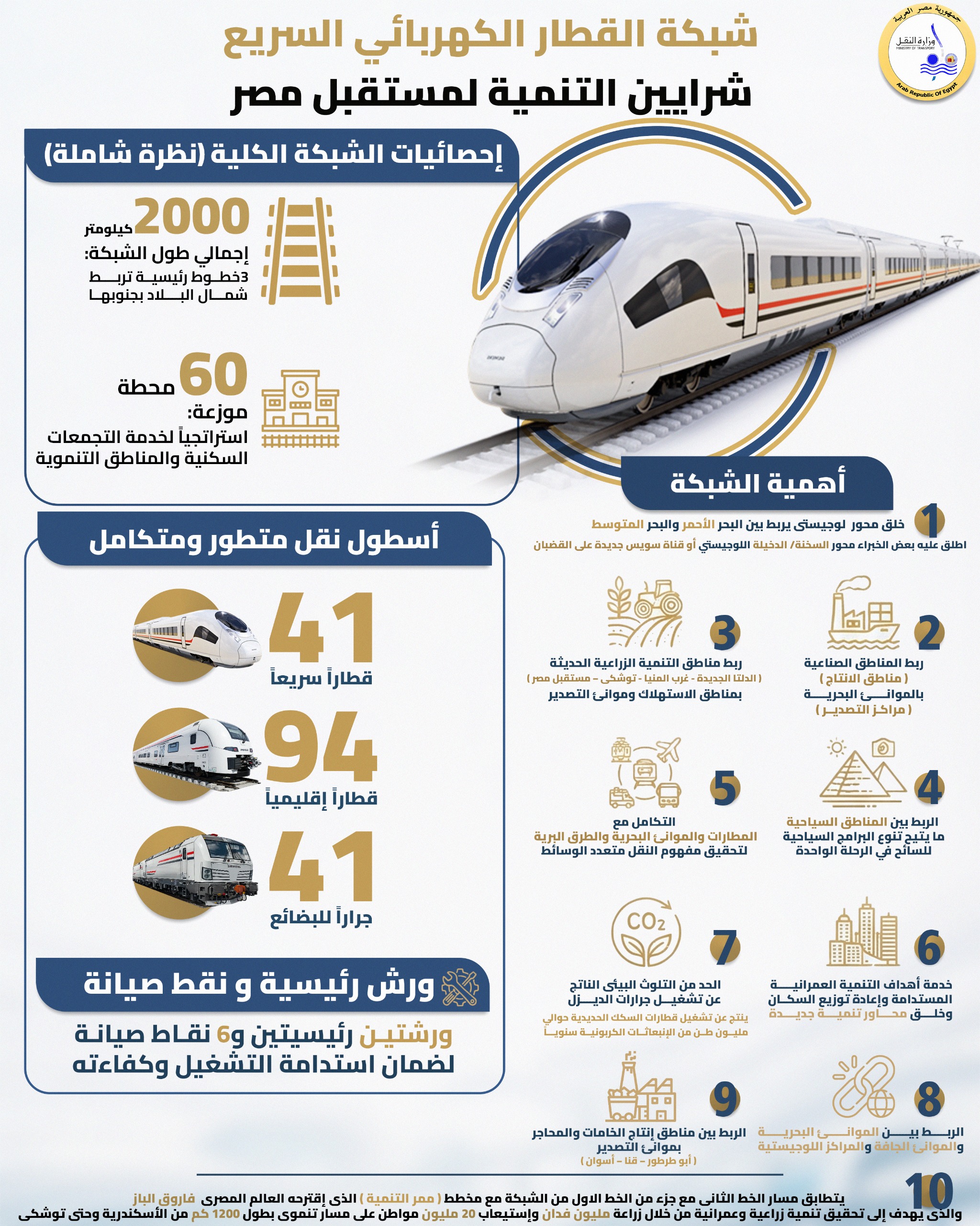 ومن هنا تبرز فكرة “قناة السويس البرية” عبر القطار الكهربائي السريع كتصور طموح يعيد تعريف مفهوم العبور بين الشرق والغرب، ويمنح النقل البري والسككي دورا تكامليا مع قناة السويس البحرية، لا منافسا لها.