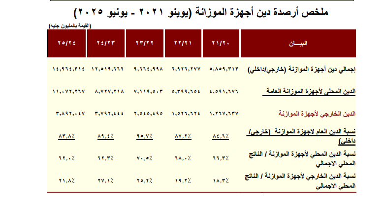 دين أجهزة الموازنة يقفز إلى 14.9 تريليون جنيه خلال 4 سنوات