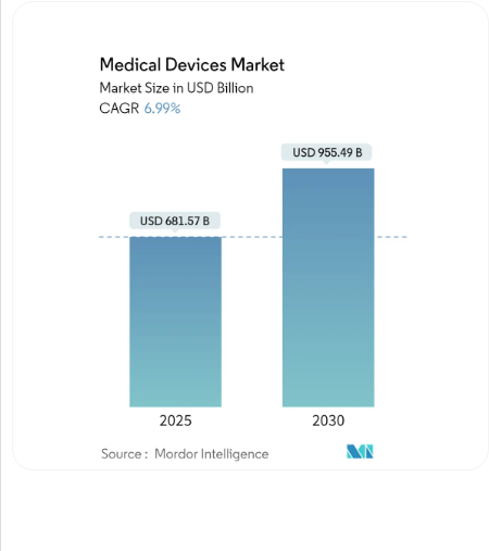 وسجل سوق الأجهزة الطبية الذكية نموًا ملفتًا، إذ تجاوز حجمه 681 مليار دولار في 2025، مع توقعات بوصوله إلى نحو 955 مليار دولار بحلول 2030، بمعدل نموٍ سنوي يتجاوز 7%، وفقًا لموقع "MordorIntelligence" وشركات كبرى مثل GE Healthcare، وسيمنس هيلثينيرز، وفيليبس استثمرت مليارات الدولارات في تطوير أجهزة تصوير وتشخيص، مدعومة بخوارزميات ذكاءٍ اصطناعي قادرةٍ على تحليل الأشعة والفحوصات المعملية بدقة أعلى، وبنسبة تصل إلى 30% مقارنة بالأنظمة التقليدية.