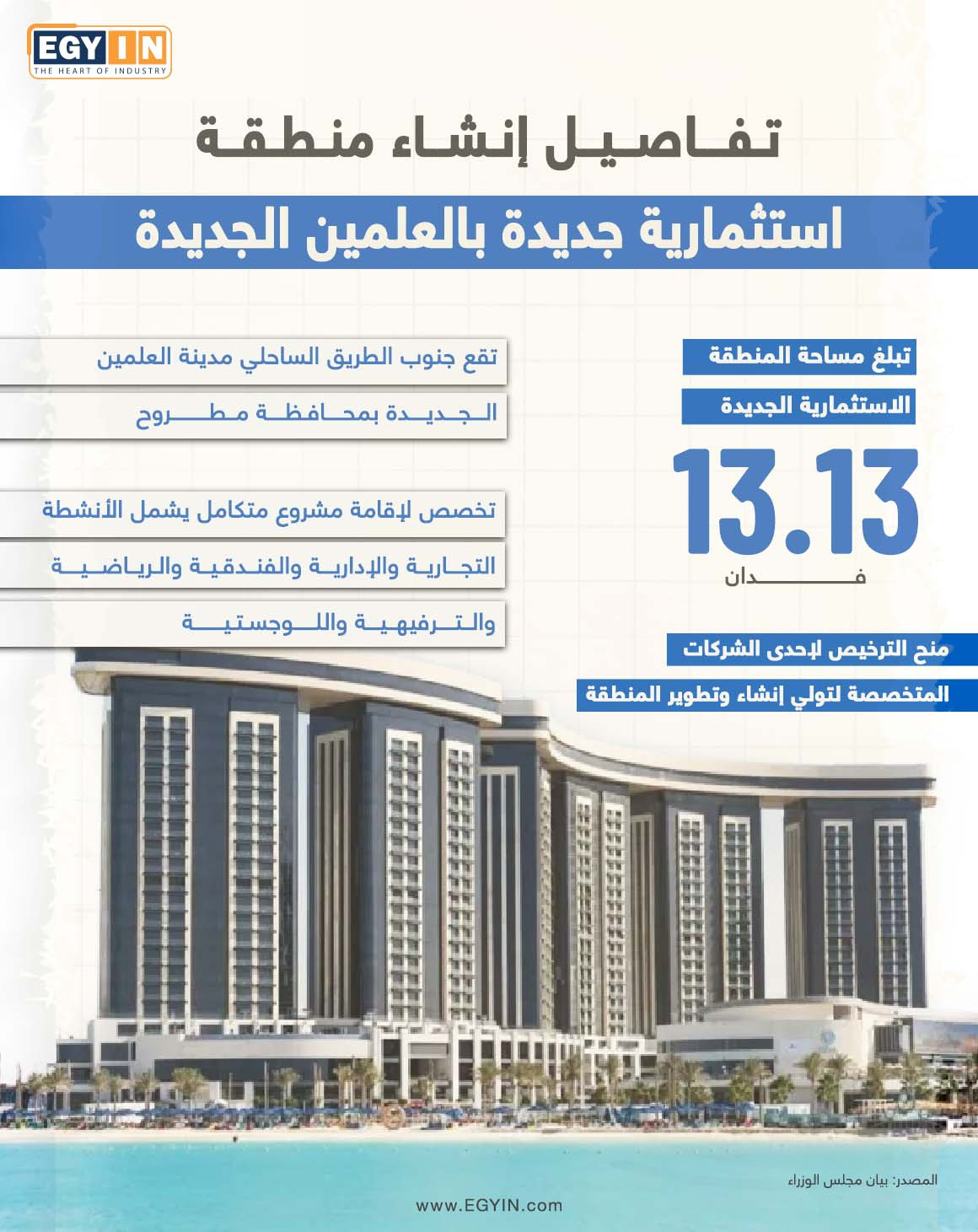 تفاصيل إنشاء منطقة استثمارية جديدة بالعلمين الجديدة (إنفوجراف)