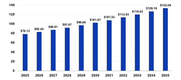 | حجم السوق بحلول عام 2035 | 133.08 مليار دولار أمريكي |