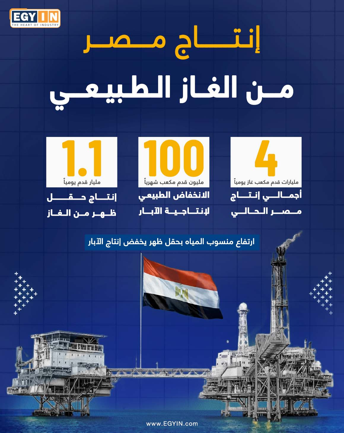 انخفض إنتاج مصر من الغاز الطبيعي إلى 4 مليارات قدم مكعبةٍ يوميًا، مقارنة بـ4.1 مليار منتصف الشهر الجاري، مع فقد إنتاجية الآبار نحو 100 مليون قدم شهريًا كانخفاض طبيعي.