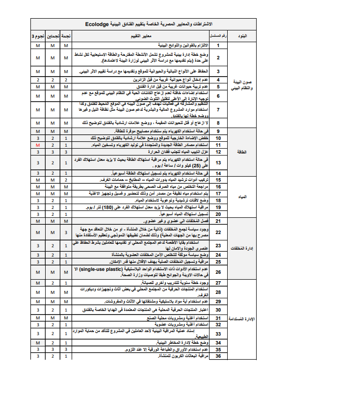 اشتراطات ومعايير تقييم الفنادق البيئية في مصر، مستند
