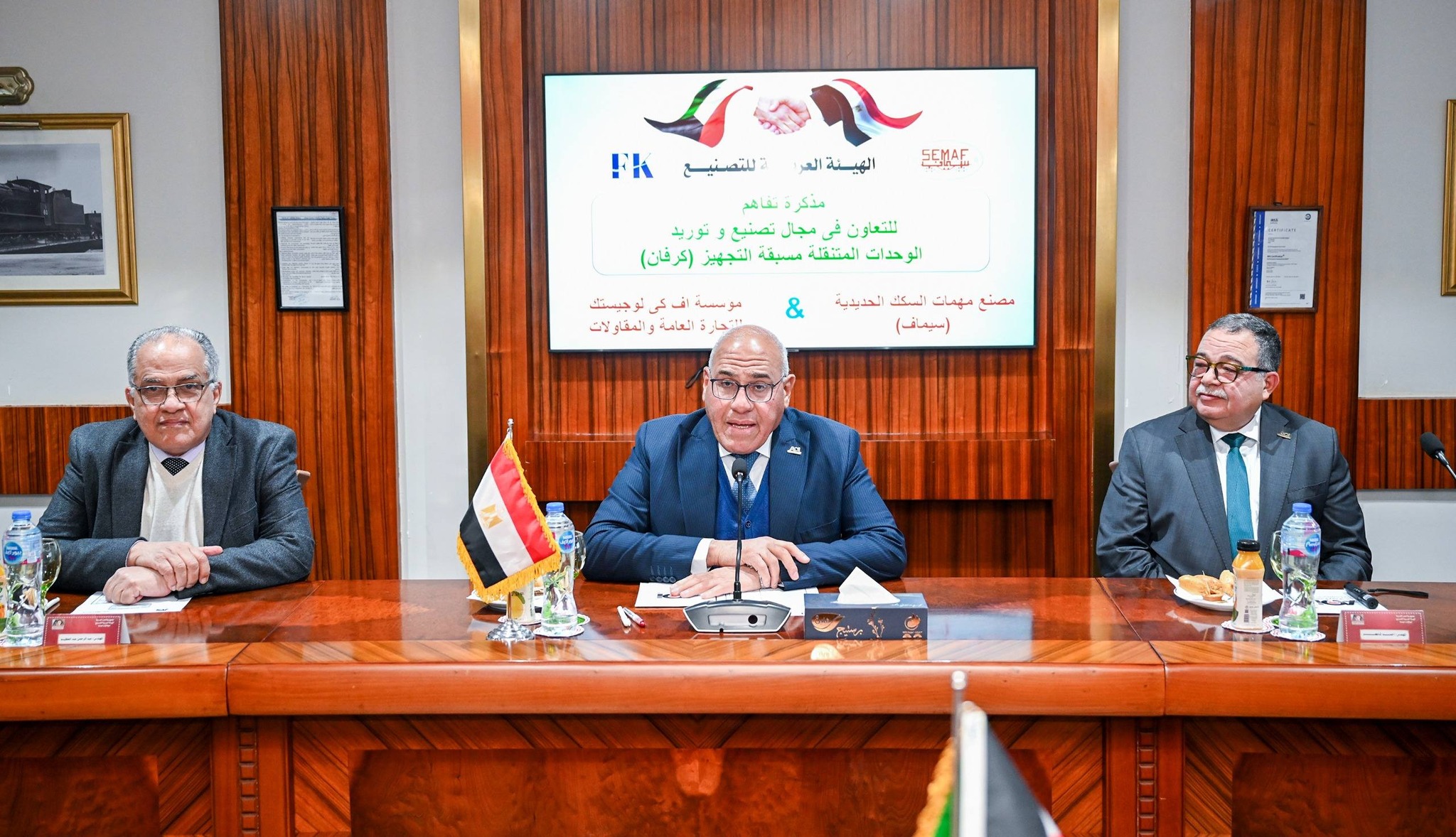 وقع مصنع سيماف التابع للهيئة العربية للتصنيع مذكرة تفاهم مع مؤسسة إف كي لوجستك للتجارة العامة والمقاولات الكويتية، لتعميق التصنيع المحلي وتوطين أحدث التكنولوجيات بالاستفادة من القدرات التصنيعية المتطورة بمصنع سيماف الرائد في صناعات السكك الحديدية ومترو الأنفاق والتي يرأسها اللواء مهندس أحمد شاكر.