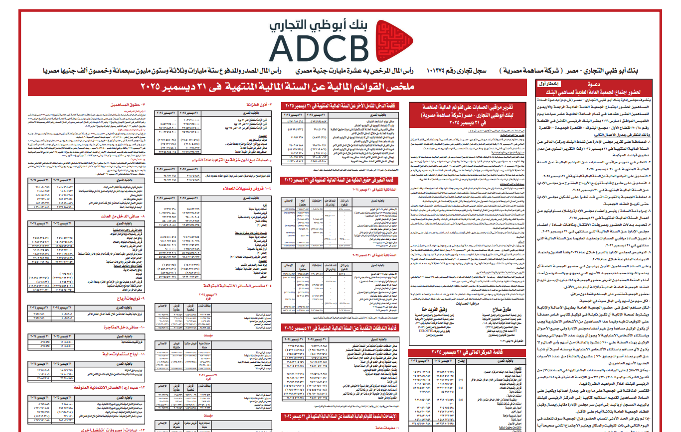 أظهرت القوائم المالية لبنك أبوظبي التجاري مصر، ارتفاع أرباح البنك بنسبة 34%، إلى نحو 5.7 مليار جنيه بنهاية ديسمبر 2025، مقابل بـ 4.2 مليار جنيه خلال عام 2024.