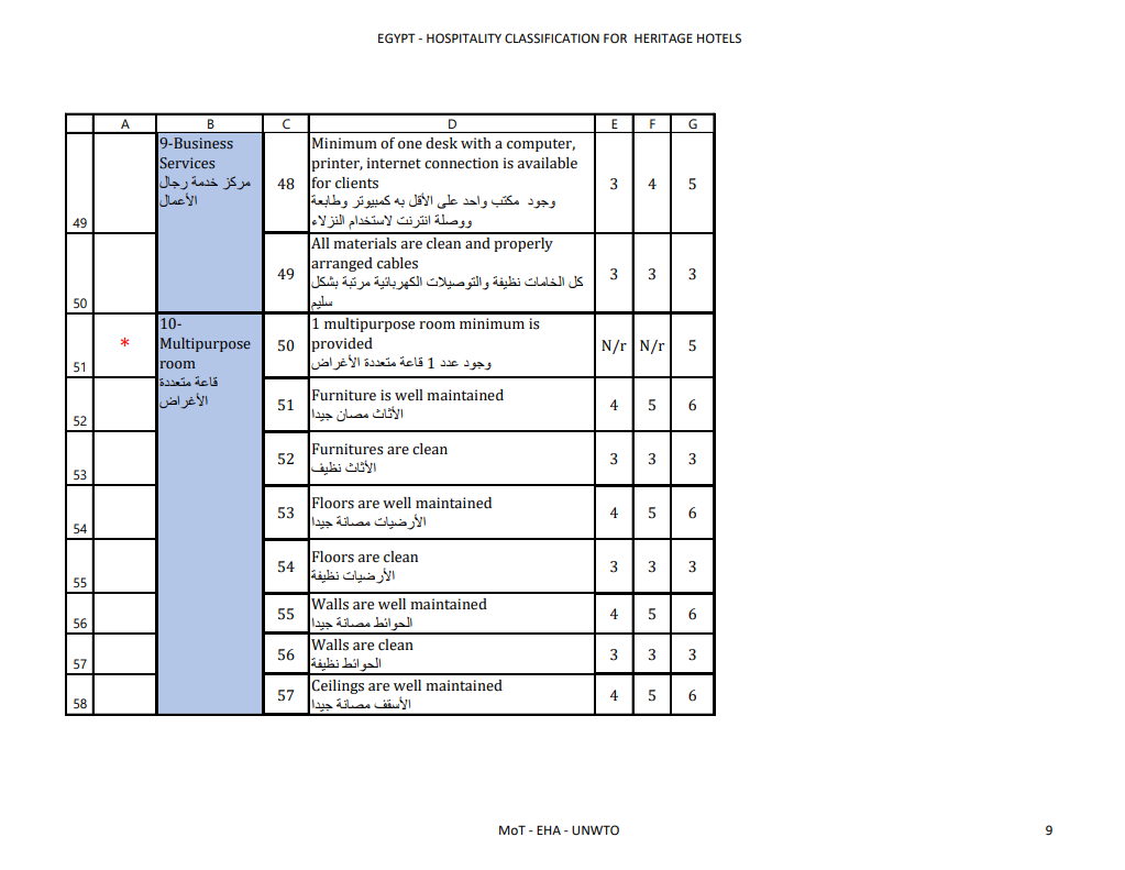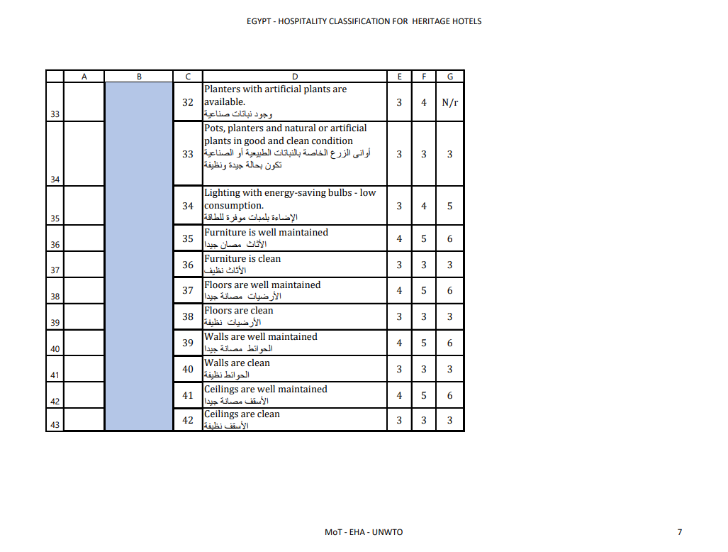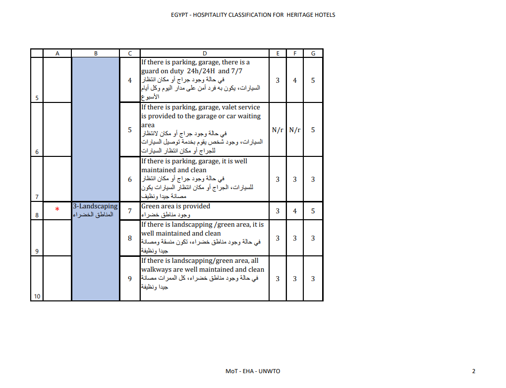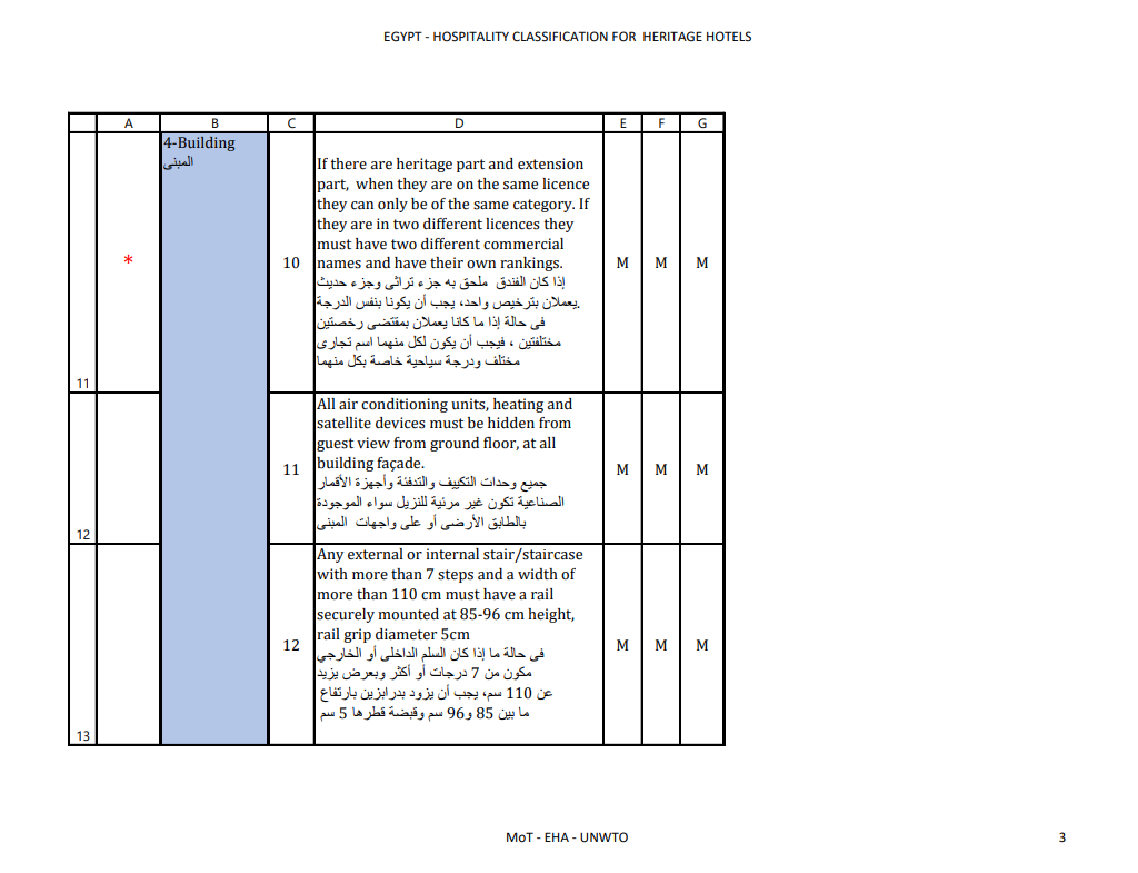 وحصل موقع «إيجي إن» على المستندات الصادرة عن منظمة الأمم المتحدة للسياحة التي توضح المواصفات والمعايير الفنية للحصول على ترخيص للفنادق التراثية للمستثمرين.