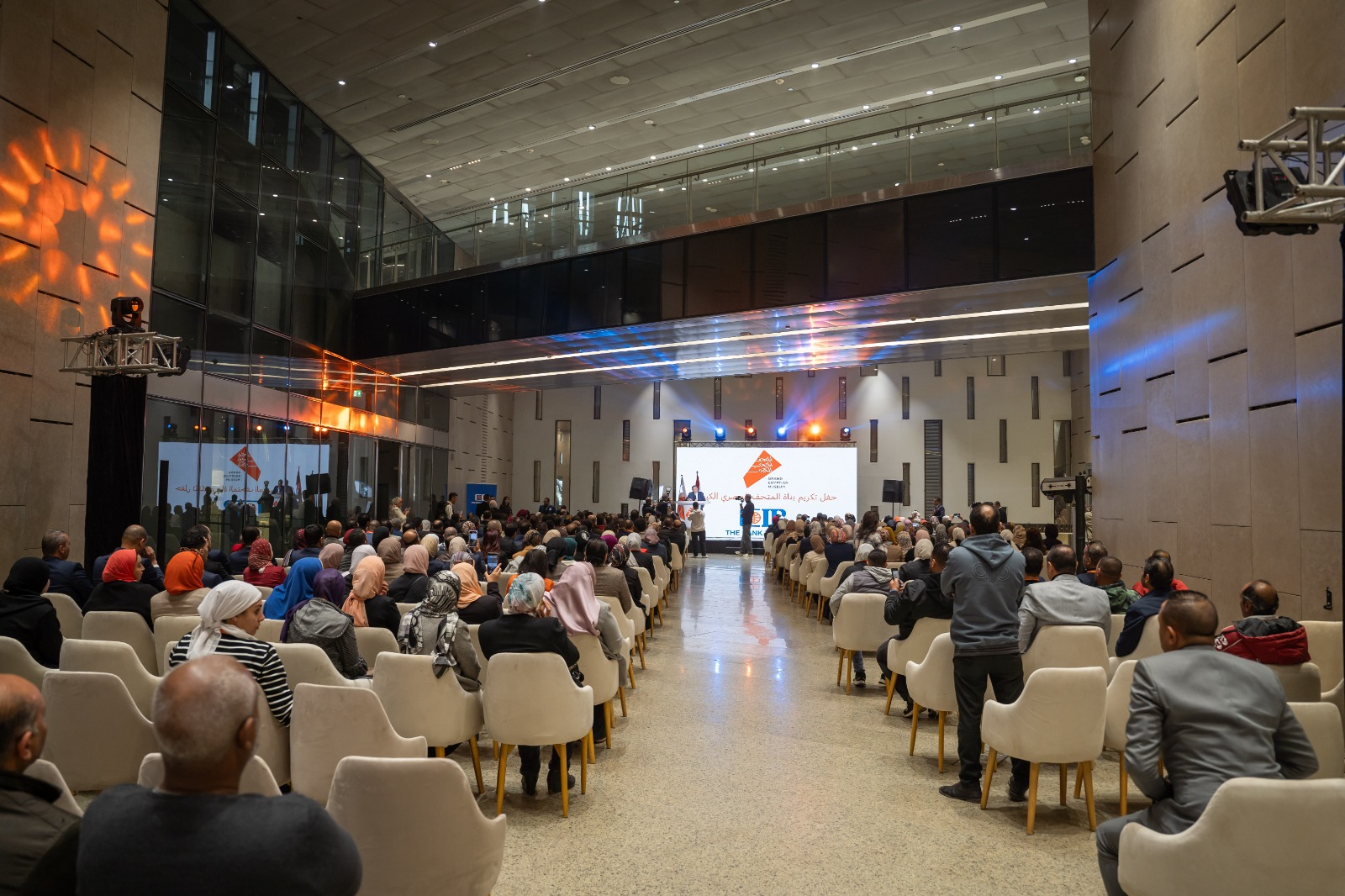 نظّم المتحف المصري الكبير احتفالية خاصة لتكريم بُنَاة المتحف من الأثريين والمرممين والفنيين والعاملين بمختلف التخصصات، وذلك تقديرًا لجهودهم المخلصة ودورهم الوطني البارز في تشييد أحد أكبر وأهم المشروعات الثقافية والحضارية على مستوى العالم.