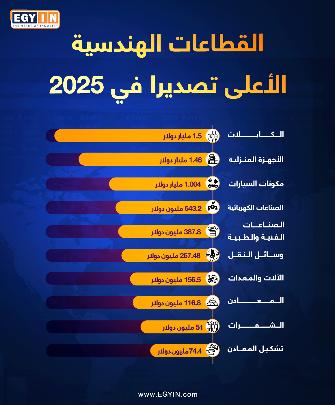 القطاعات الهندسية الأعلى تصديرًا في 2025