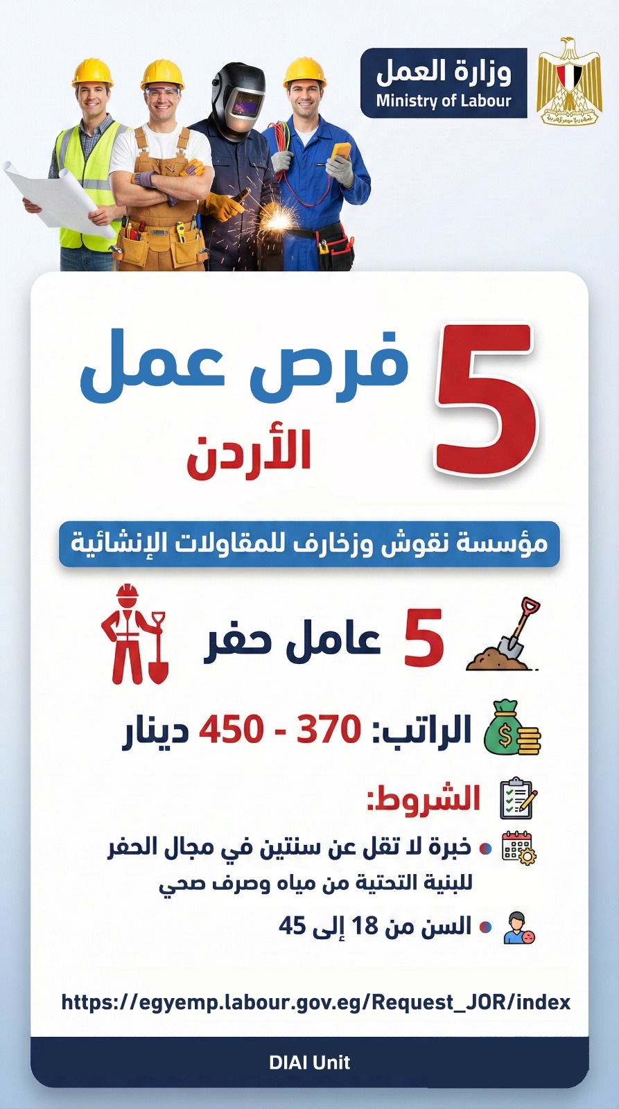 وزارة العمل تعلن فرص عملٍ جديدة بالأردن براتب أكثر من 29 ألف جنيه شهرياً