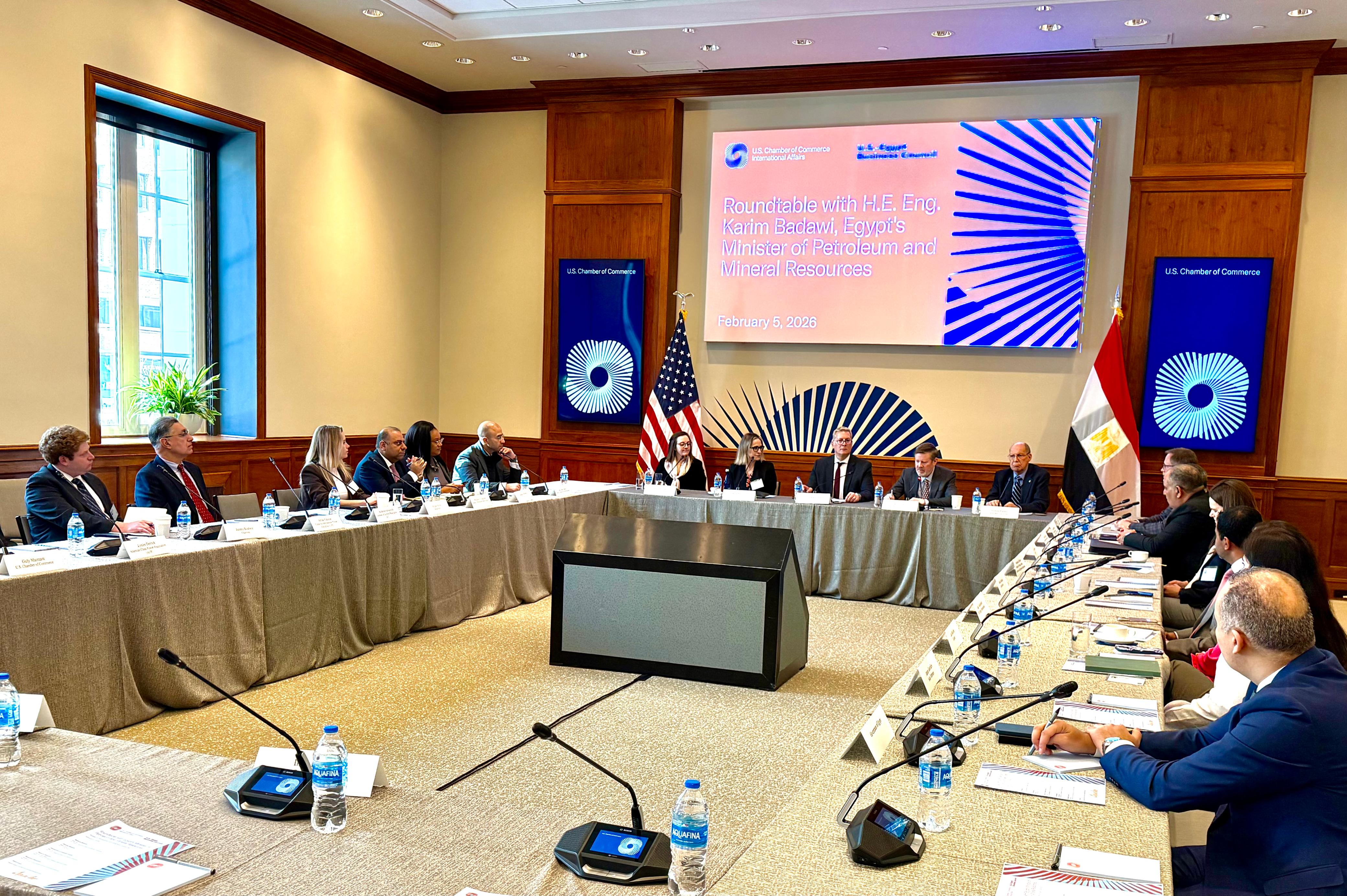 عقد المهندس كريم بدوي، وزير البترول والثروة المعدنية، لقاء مائدة مستديرة موسع بمقر غرفة التجارة الأمريكية مع ممثلي مجتمع الأعمال الأمريكي من شركات البترول والطاقة، وذلك في إطار جهود الوزارة لتعزيز الشراكات وجذب استثمارات جديدة للقطاع، خلال زيارته إلى العاصمة الأمريكية واشنطن .