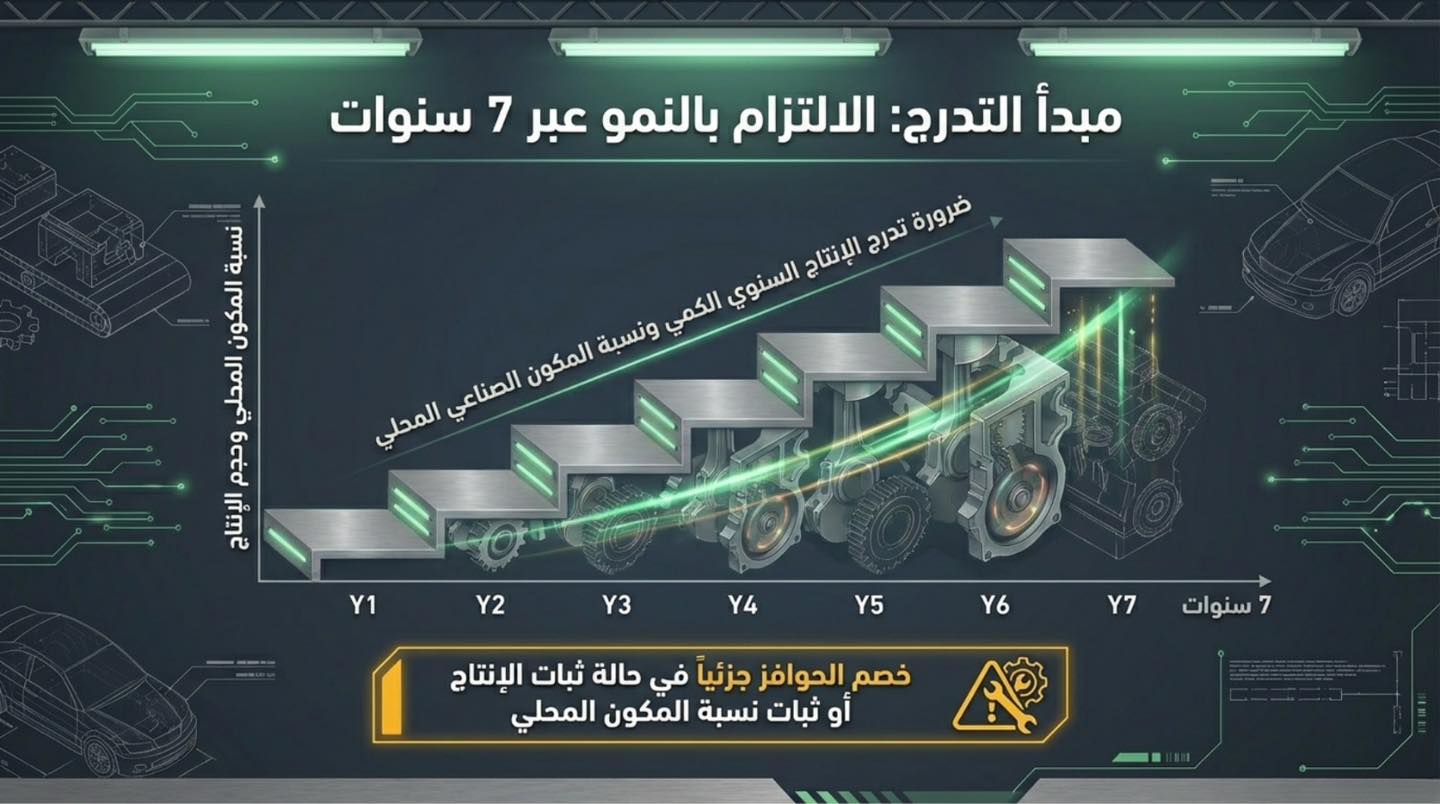 زيادة نسبة المكون الصناعي المحلي المستهدف سنويًا داخل السيارات المنتجة