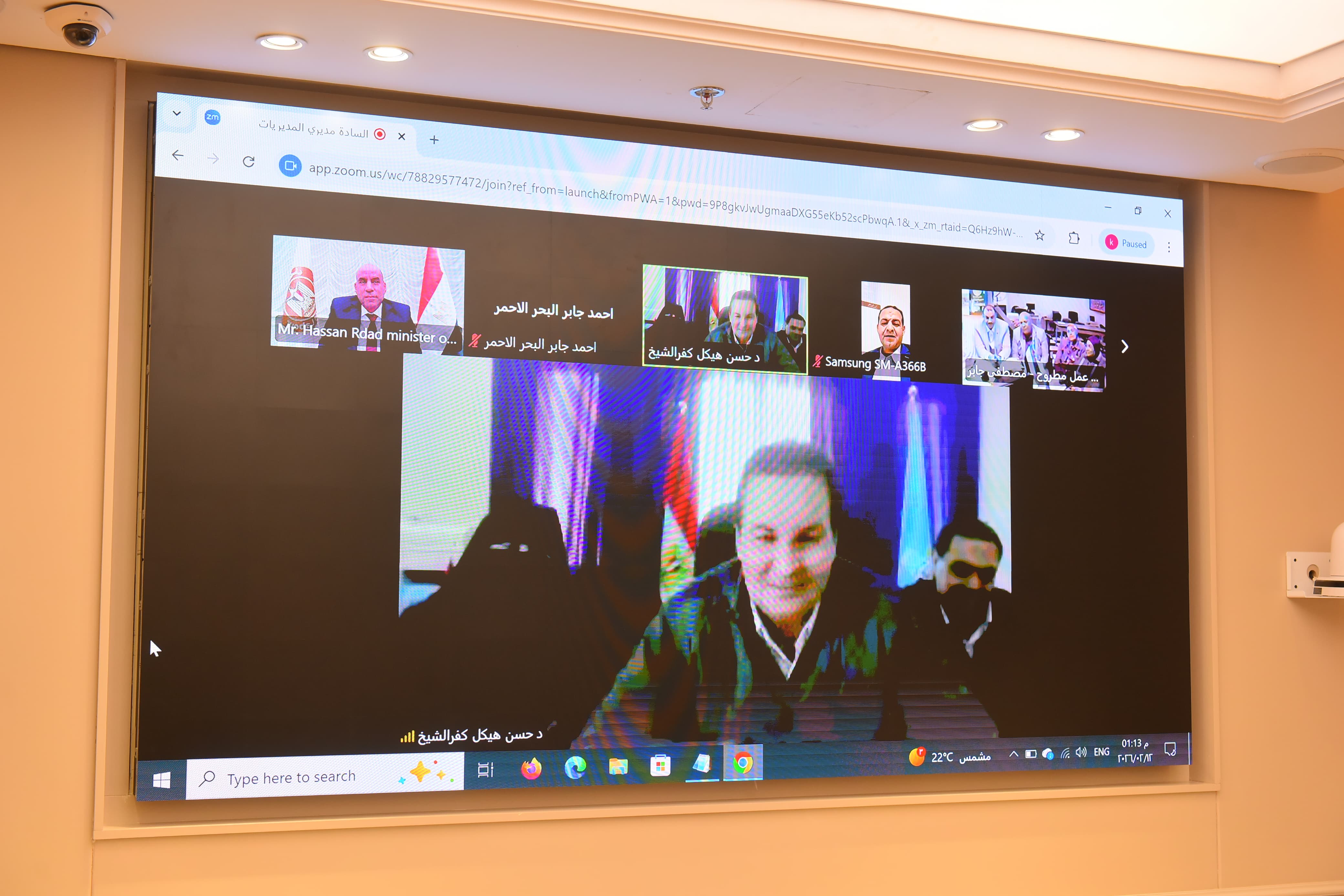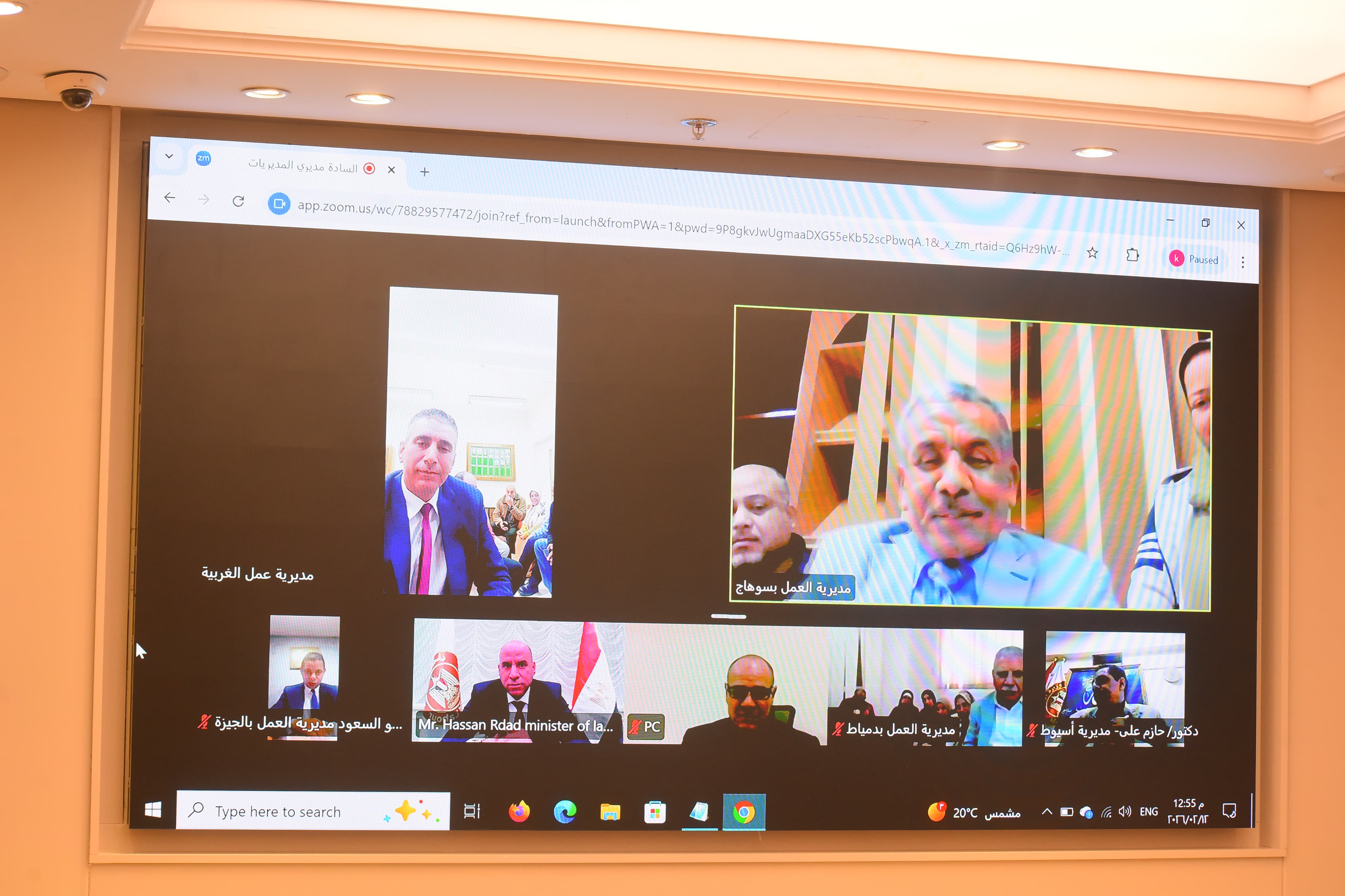 عقد حسن رداد، وزير العمل، اجتماعًا موسعًا عبر تقنية "الفيديو كونفرانس" مع مديري مديريات العمل والعاملين بها بكافة محافظات الجمهورية.