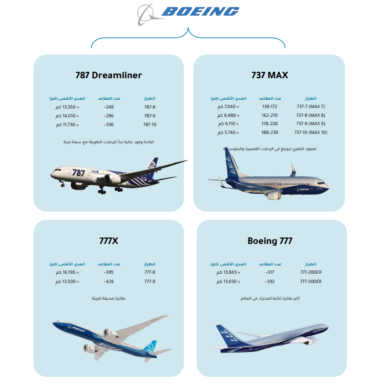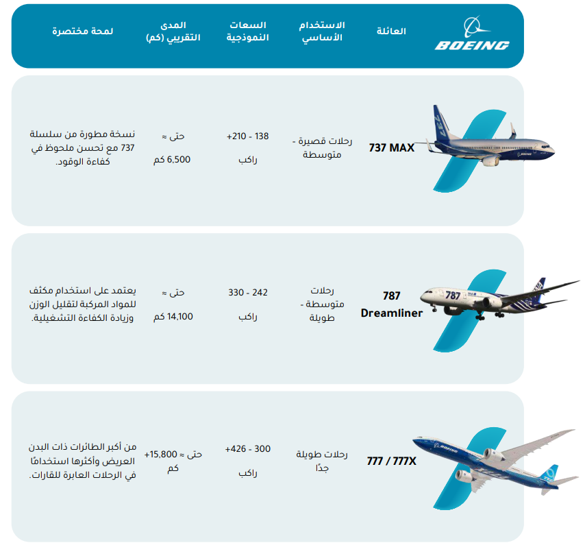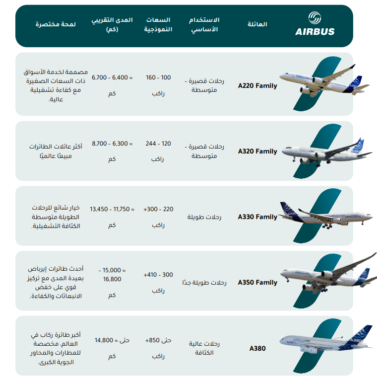 ولهذا السبب، تعتمد شركات الطيران اليوم على عائلات من الطائرات صممت لتغطي مختلف أنماط التشغيل من الرحلات القصيرة والمتوسطة إلى الرحلات الطويلة وعابرة القارات، وتشكل هذه العائلات العمود الفقري للنقل الجوي العالمي، كما تعكس الفلسفة الصناعية والتشغيلية لكل من بوينج وإيرباص.