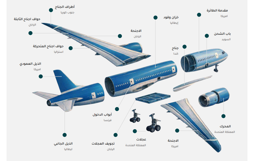 لم تعد الطائرة التجارية الحديثة منتجًا يصنع داخل دولة واحدة، بل أصبحت مشروعًا صناعيًا عالميًا معقدًا تتوزع مكوناته عبر عشرات الدول، فكل طائرة هي نتاج شبكة مترابطة من الموردين المتخصصين حيث تصمم الأجزاء في دولة، وتصنع في أخرى، ثم تنقل لتجميعها النهائي في موقع مختلف.