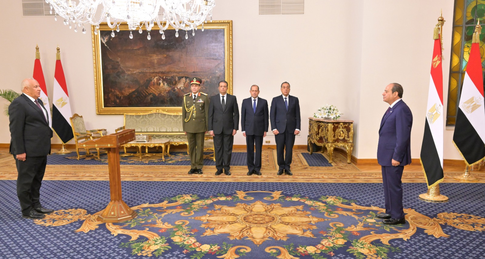 أدى المحافظون الجدد صباح اليوم الاثنين، اليمين الدستورية أمام الرئيس عبد الفتاح السيسي بمقر رئاسة الجمهورية، بحضور الدكتور مصطفى مدبولي والدكتورة منال عوض.