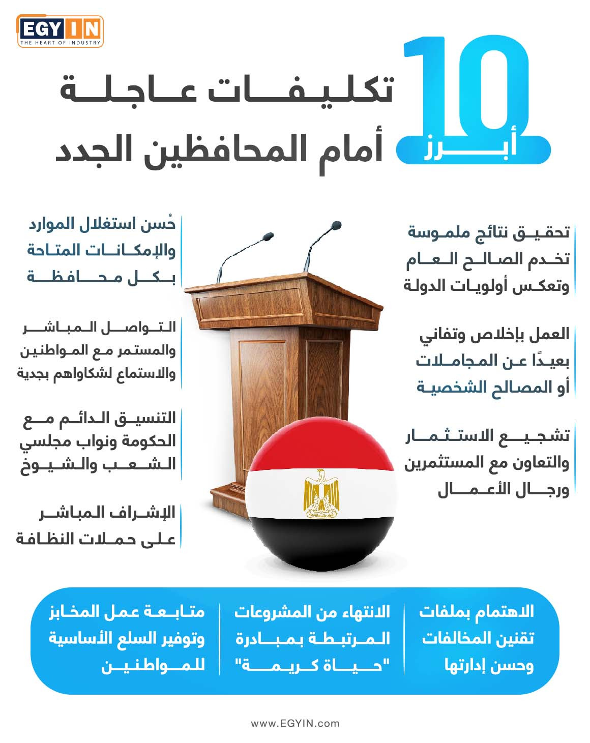 أبرز 10 تكليفات من الرئيس السيسي للمحافظين الجدد (انفوجراف)