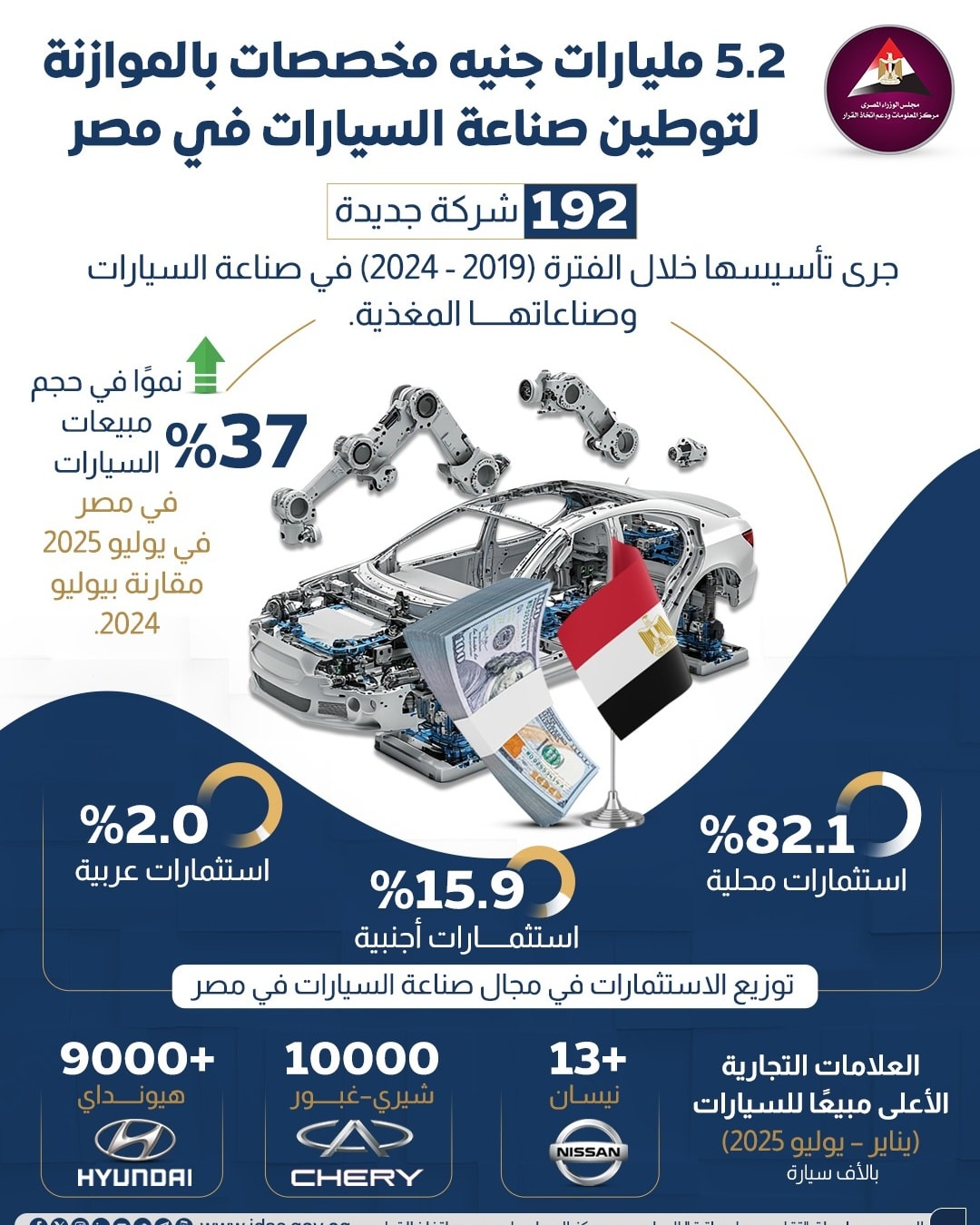 يأتي ذلك بالتوازي مع تنفيذ البرنامج الوطني لتنمية صناعة السيارات، الذي يستهدف جذب استثمارات جديدة وتعميق الصناعة وزيادة تنافسية السوق المصرية.