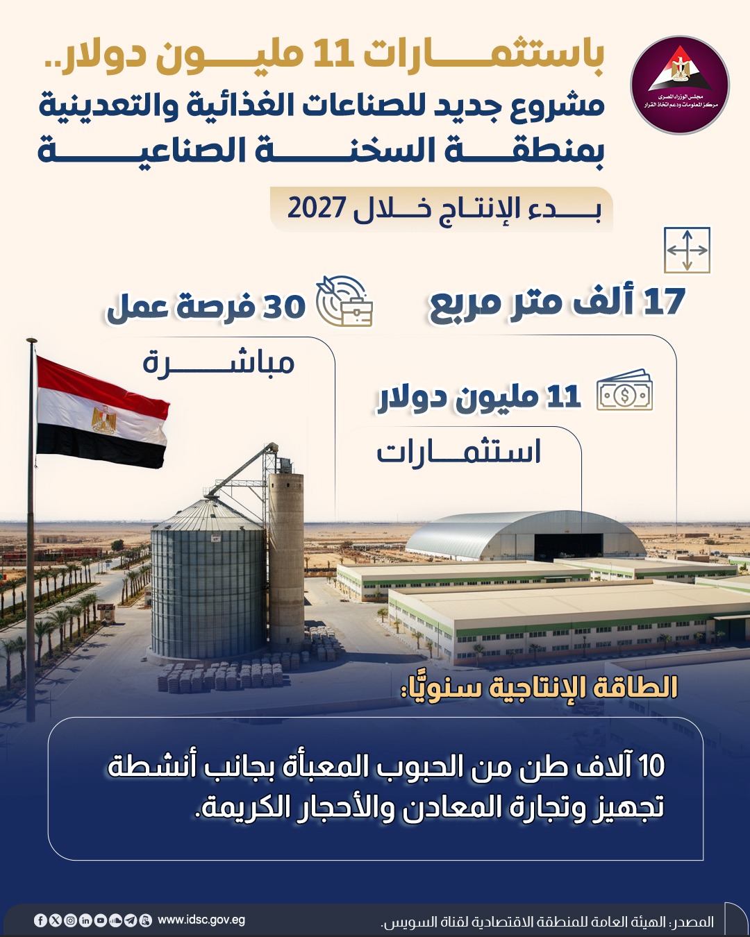 باستثمارات 11 مليون دولار، مشروع جديد للصناعات الغذائية والتعدينية بمنطقة السخنة الصناعية