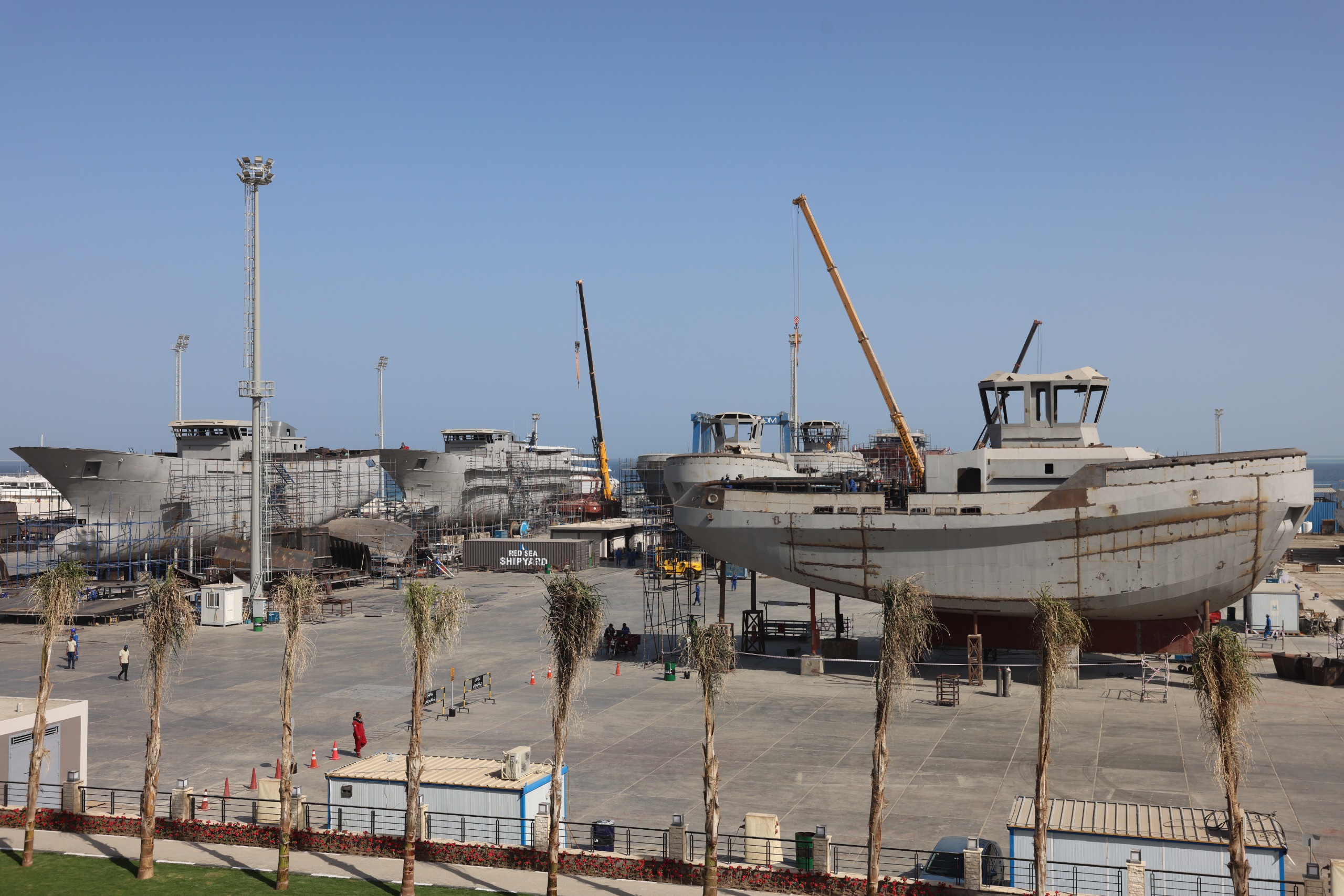 كما تفقد مستجدات بناء سفينتي الصيد "رزق 2" و"رزق 3"، حيث انتهت أعمال بناء البدن ويجري حالياً تركيب المكونات الميكانيكية والكهربائية والماكينات الموردة من شركة "ABC" البلجيكية.