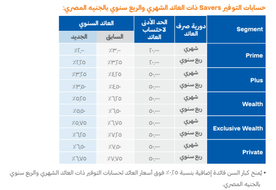 - حساب Exclusive Wealth: الحد الأدنى 500 ألف جنيه، العائد انخفض من 10.5% إلى 9.5%.