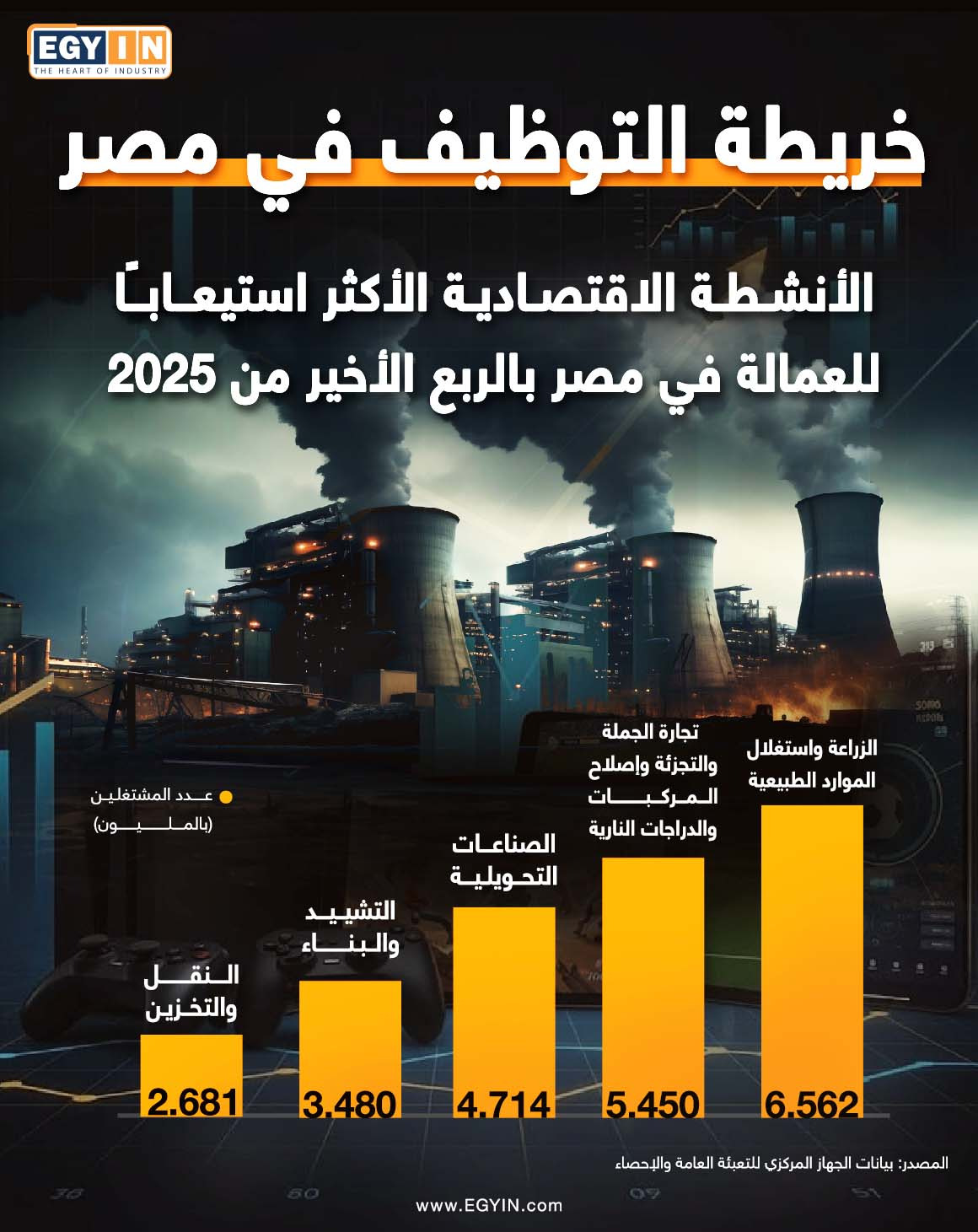 القطاعات الأكثر استيعابا للعمالة في مصر خلال الربع الأخير من 2025 (إنفوجراف)