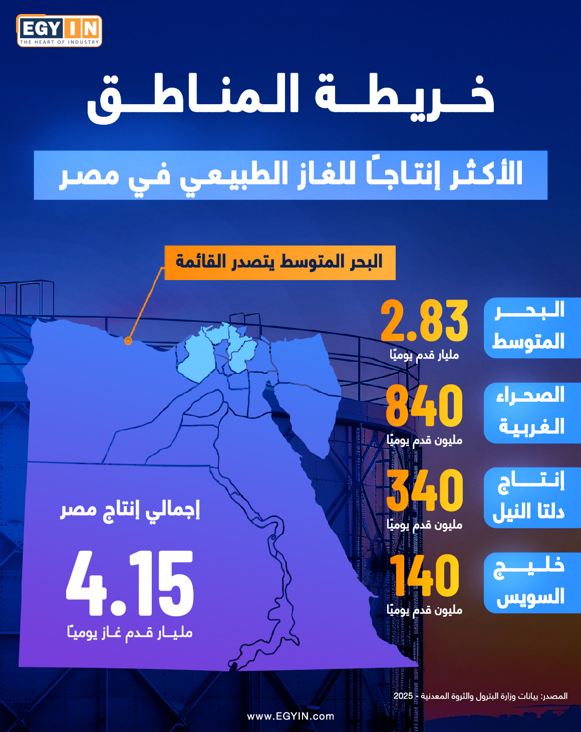 خريطة المناطق الأكثر إنتاجًا للغاز الطبيعي في مصر (إنفوجراف)