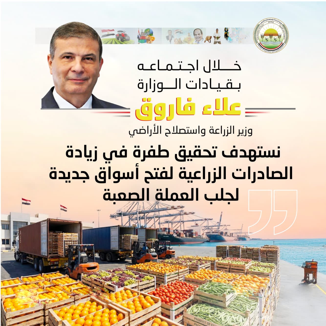 الزراعة تعلن خطة لزيادة الصادرات وفتح أسواق جديدة
