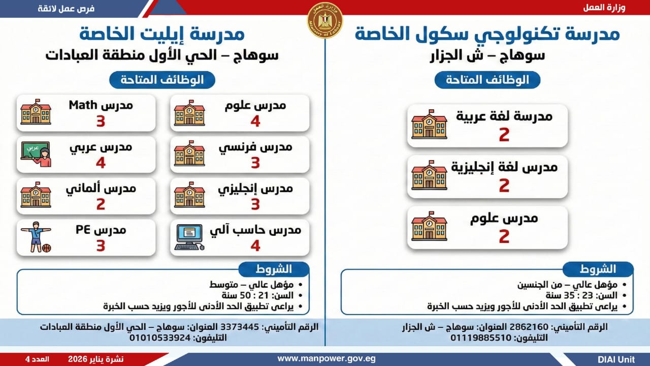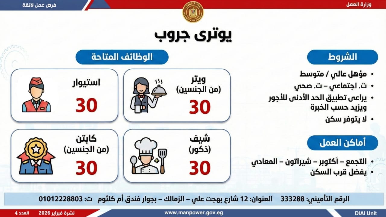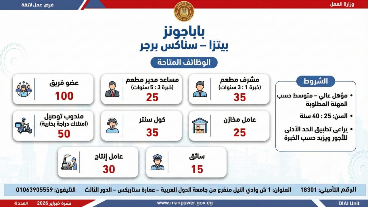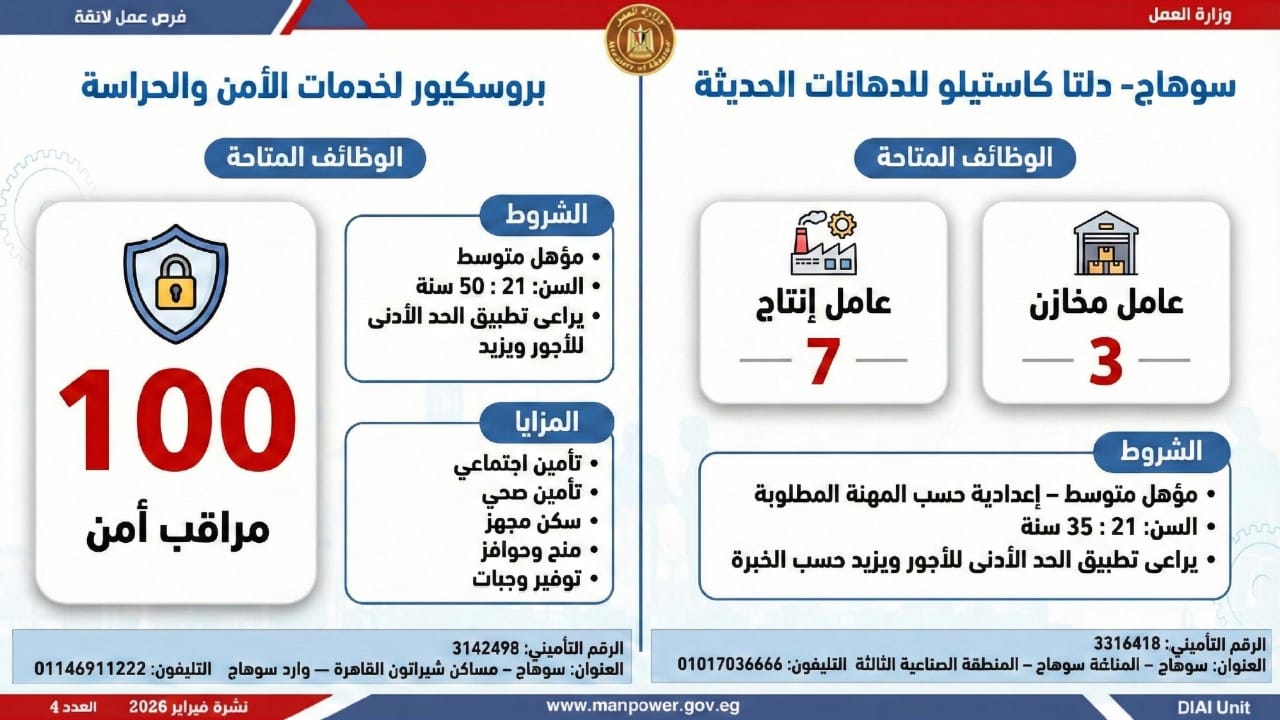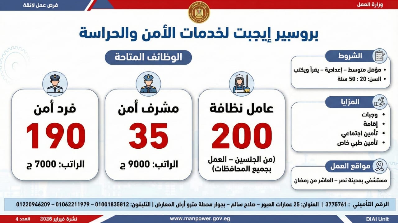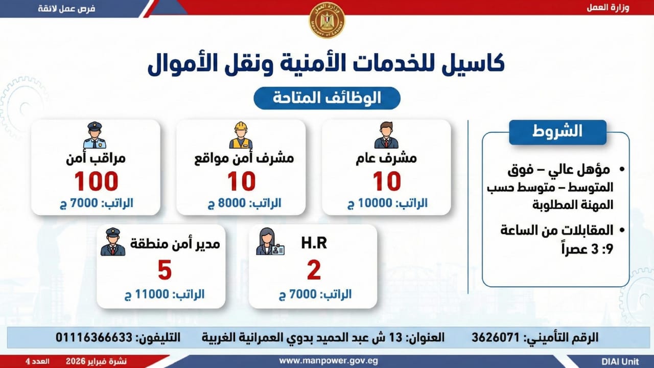وأوضحت الوزارة أن النشرة تضم فرصًا متنوعة في عشرات التخصصات والمهن، برواتب مجزية تُحدد وفق طبيعة الوظيفة والمقابلة الشخصية، مع التزام كامل بتطبيق الحد الأدنى للأجور، والاستفادة من مظلة التأمينات الاجتماعية والصحية، بما يضمن بيئة عمل آمنة ومستقرة.