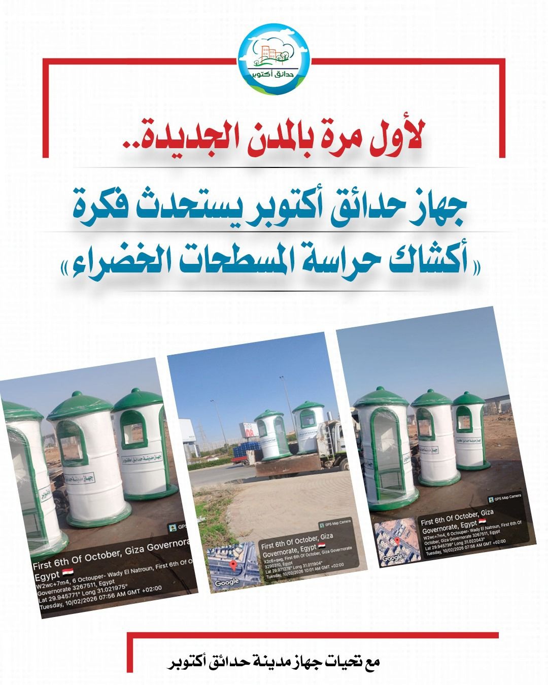 من جانبه، أكد المهندس مصطفى سيد، نائب رئيس الجهاز، أن هذه الفكرة تُنفذ للمرة الأولى بالمدن الجديدة لمراقبة المسطحات الخضراء بالجزر والميادين، وذلك من خلال أكشاك مخصصة للحراسة.