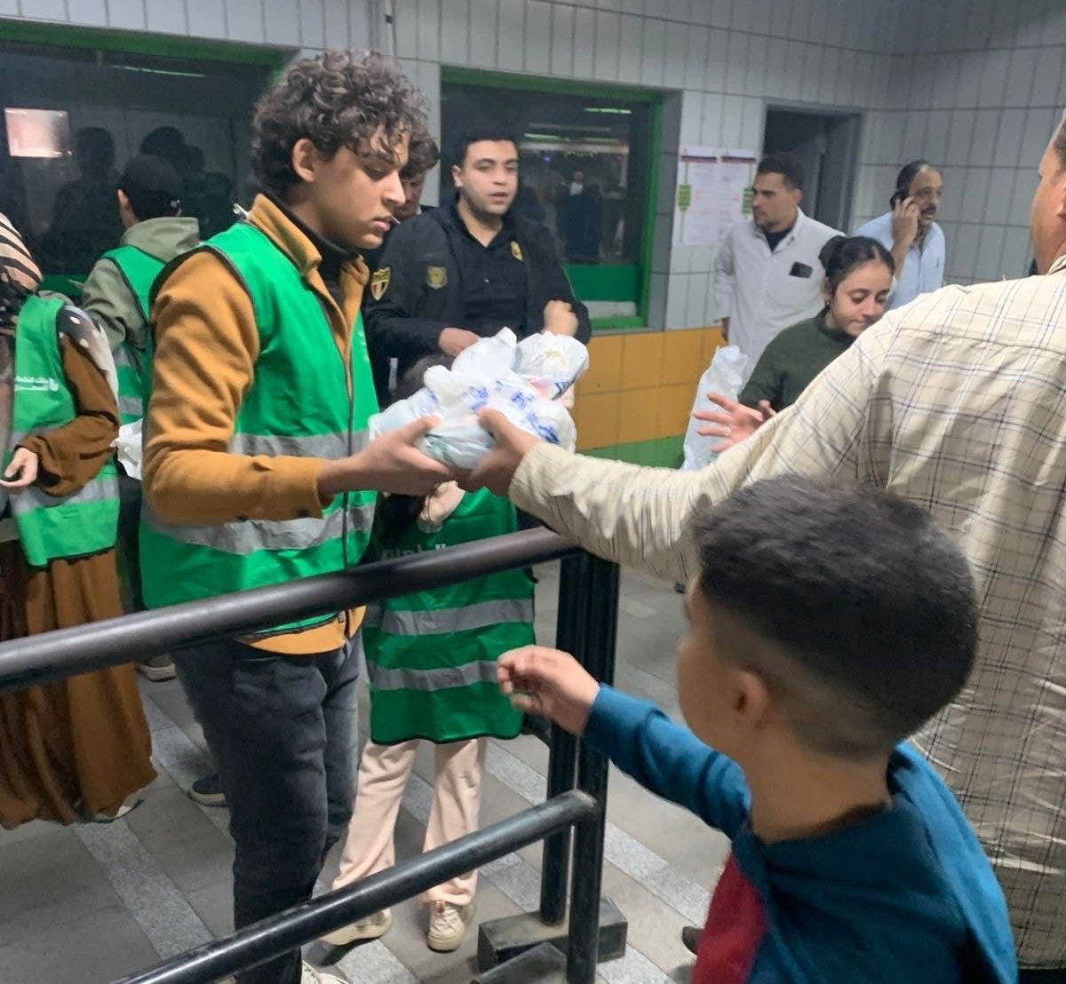 وتقوم الحملة، بتوزيع الوجبات الخفيفة يوميًا تحت إشراف العميد حسام السيسي، رئيس الإدارة المركزية للشئون المالية والإدارية بوزارة النقل وبالتنسيق مع المهندس على الفضالي، العضو المنتدب التنفيذي للشركة المصرية لإدارة وتشغيل المترو.
