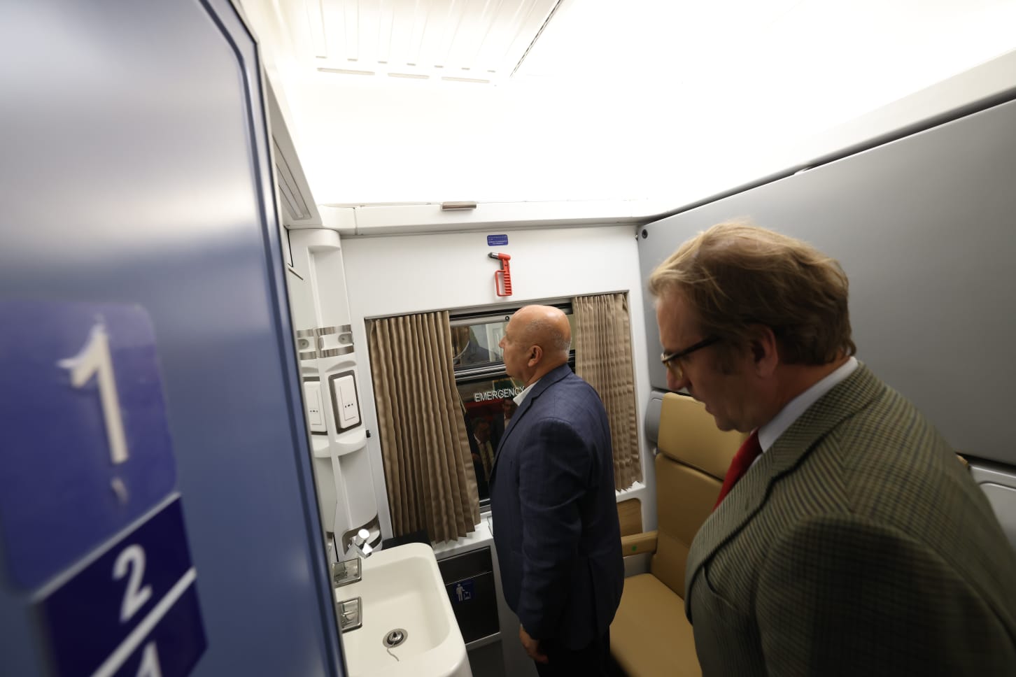 وتم الانتهاء من إعادة تأهيل وتطوير عدد 20عربة (19 نوم - عربة نادٍ) ، وكذلك تم تفقد منظومة العمل داخل أقسام الإنتاج المختلفة بالمصنع، وشاهد الوزير مراحل إعادة وتجديد مكونات عربات النوم من حيث تجهيز الكبائن والدهانات والأفران ومعالجة الأجزاء الداخلية، وتحديث المقاعد والأرضيات والشبابيك والستائر وأنظمة التكييف ودهانات العربة الخارجية.