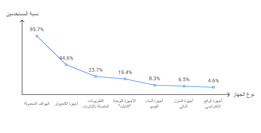يلاحظ من خلال هذه الإحصائيات أن الهواتف هى المهيمنة على استخدام الإنترنت في مصر، بنسبة تخطت الـ95%، بعدها الكمبيوتر، بنسبة 44.6%، وعلى الرغم من نسبة استخدامه المرتفعة، لكنه لم يصل إلى نصف نسبة استخدام الهواتف الذكية، وهذا يدل على تفضيل غالبية المستخدمين في مصر للتطبيقات السريعة بدلًا من المتصفحات التقليدية.