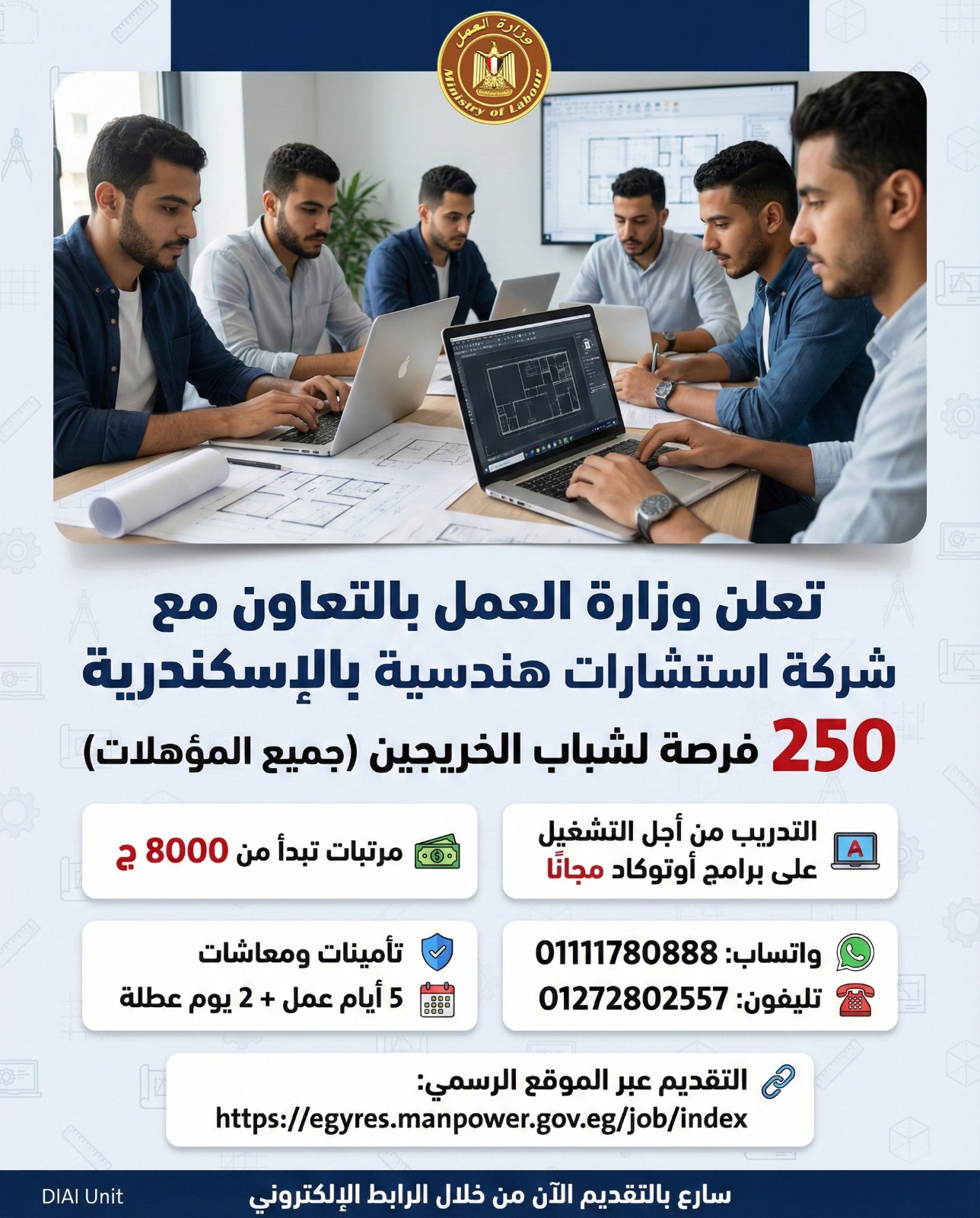 250 فرصة تدريب وتشغيل في شركة استشارات هندسية بالإسكندرية (رابط التقديم)