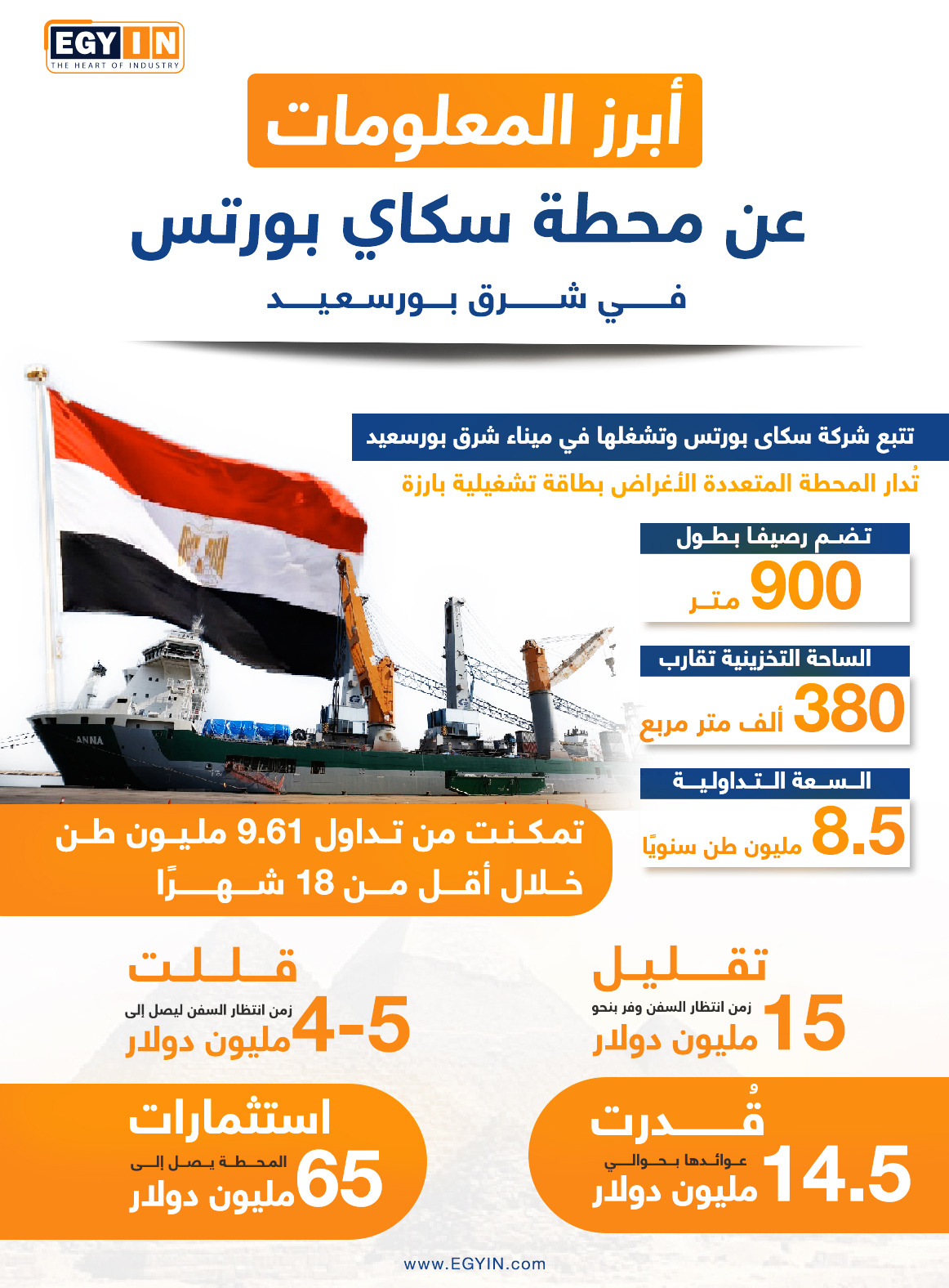 أبرز المعلومات عن محطة سكاي بورتس شرق بورسعيد، إنفوجراف