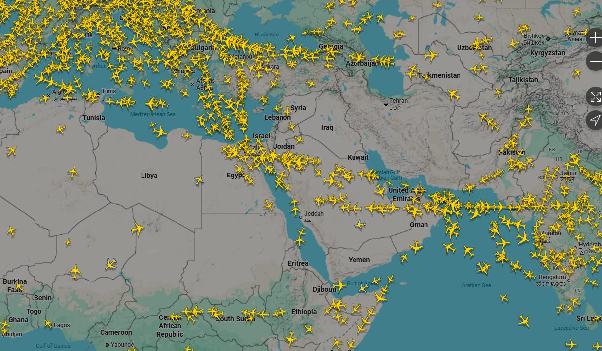 وأوضح الموقع في تغريدة على منصة "إكس" أنه يجري تحويل مسارات الرحلات الجوية بعيدا عن تل أبيب وعمان، في ظل حالة التوتر التي رافقت الهجوم الإسرائيلي على إيران قبل قليل.