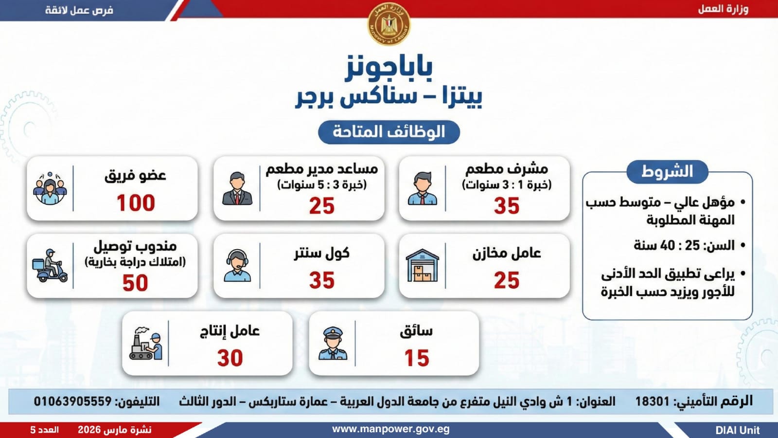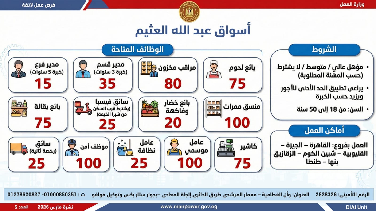 وبيّنت الوزارة أن النشرة تضم فرصًا متنوعة في عشرات التخصصات والمهن، برواتب مجزية تُحدد وفق طبيعة الوظيفة والمقابلة الشخصية، مع التزام كامل بتطبيق الحد الأدنى للأجور، والاستفادة من مظلة التأمينات الاجتماعية والصحية، بما يضمن بيئة عمل آمنة ومستقرة تحفظ كرامة العامل وتصون حقوقه، وتشمل النشرة فرصًا مخصصة لذوي الهمم في إطار سياسة الدمج المجتمعي والتمكين الاقتصادي الحقيقي.