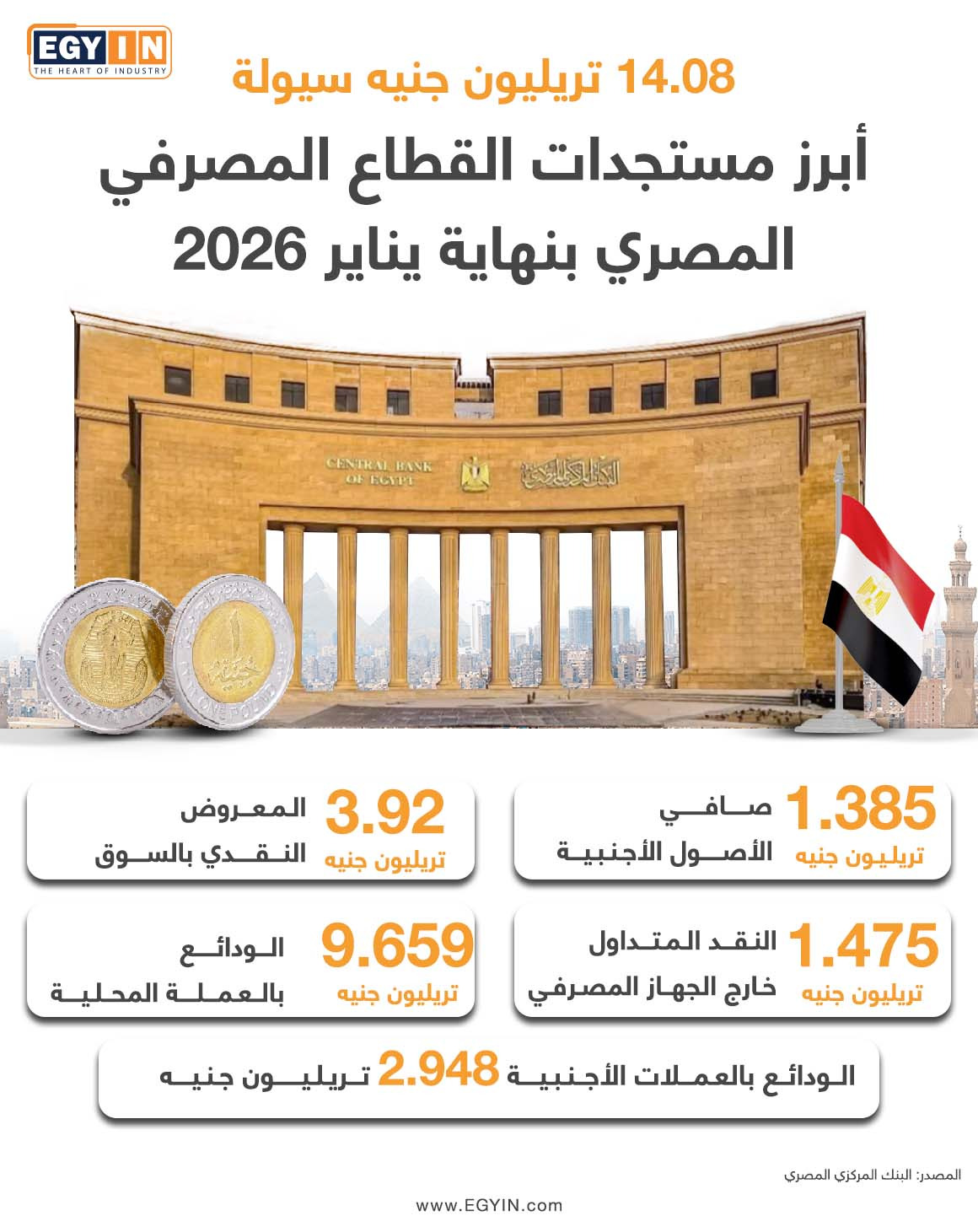 14.08 تريليون جنيه سيولة، أبرز مستجدات القطاع المصرفي (إنفوجراف)