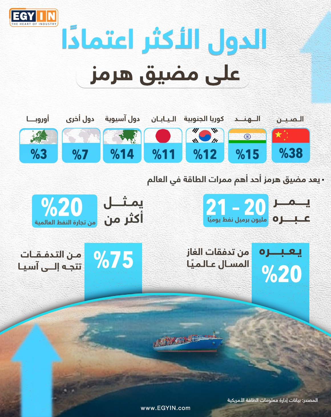 إنفوجراف حول الدول الأكثر اعتمادًا على مضيق هرمز