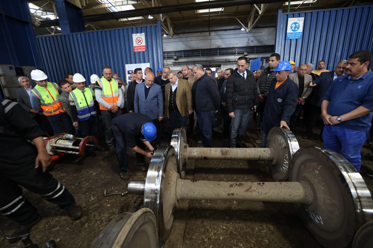 وكان في استقباله المهندس وجدي رضوان نائب وزير النقل لشؤون السكك الحديدية والجر الكهربائي، والمهندس محمد عامر رئيس الهيئة القومية لسكك حديد مصر، وعدد من قيادات الهيئة. وشملت الجولة المرور على الأقسام المختلفة داخل الورشة، التي تُعد إحدى القلاع الصناعية المتخصصة في تنفيذ العمرات بأنواعها المختلفة لعربات نقل البضائع، بمتوسط إنتاجية يصل إلى نحو 150 عربة شهريًا، إلى جانب تنفيذ أعمال الصيانة والإصلاح للأعطال الجسيمة والطارئة الخاصة بالعربات.