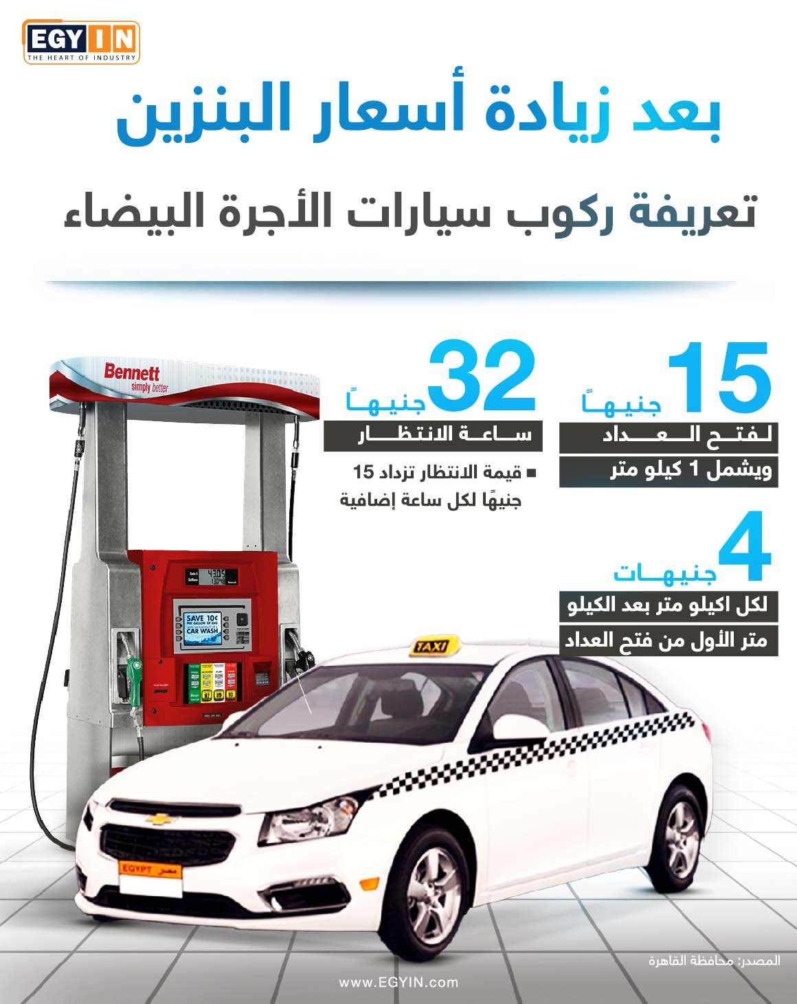 تعريفة ركوب التاكسي الأبيض بعد زيادة أسعار البنزين (إنفوجراف)