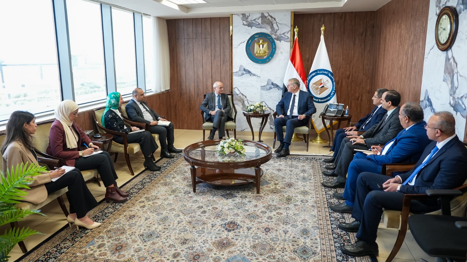 حضر اللقاء كل من المهندس سيد سليم، العضو المنتدب التنفيذي للشركة المصرية القابضة للغازات الطبيعية (إيجاس)، والمهندس إيهاب رجائي، وكيل أول الوزارة للإنتاج، والدكتور سمير رسلان، وكيل الوزارة للاتفاقيات والاستكشاف، والدكتور محمد الباجوري، المشرف على الإدارة المركزية للشؤون القانونية بالوزارة.