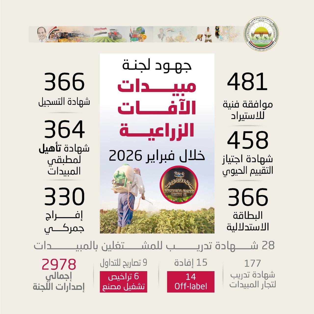 وأوضحت الدكتورة هالة أبو يوسف رئيس اللجنة، أن إجمالي الإصدارات والخدمات التي تم تنفيذها خلال شهر فبراير بلغ 2978 إصدارًا، شملت العديد من الإجراءات الفنية والتنظيمية المرتبطة بتسجيل وتداول المبيدات وتأهيل العاملين في هذا القطاع.