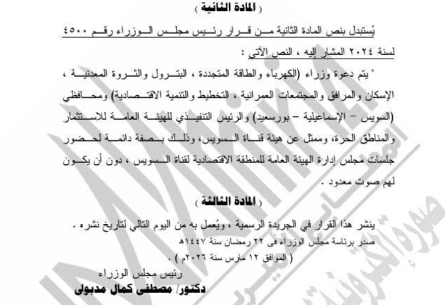 واستبدل القرار نص المادة الثانية من قرار إعادة التشكيل السابق رقم 4500 لسنة 2024، وهو ما يسمح بدعوة مجموعة من الوزراء والمسؤولين، لحضور اجتماعات مجلس الإدارة بصفة دائمة، مع عدم منحهم صوتًا معدودًا في التصويت.