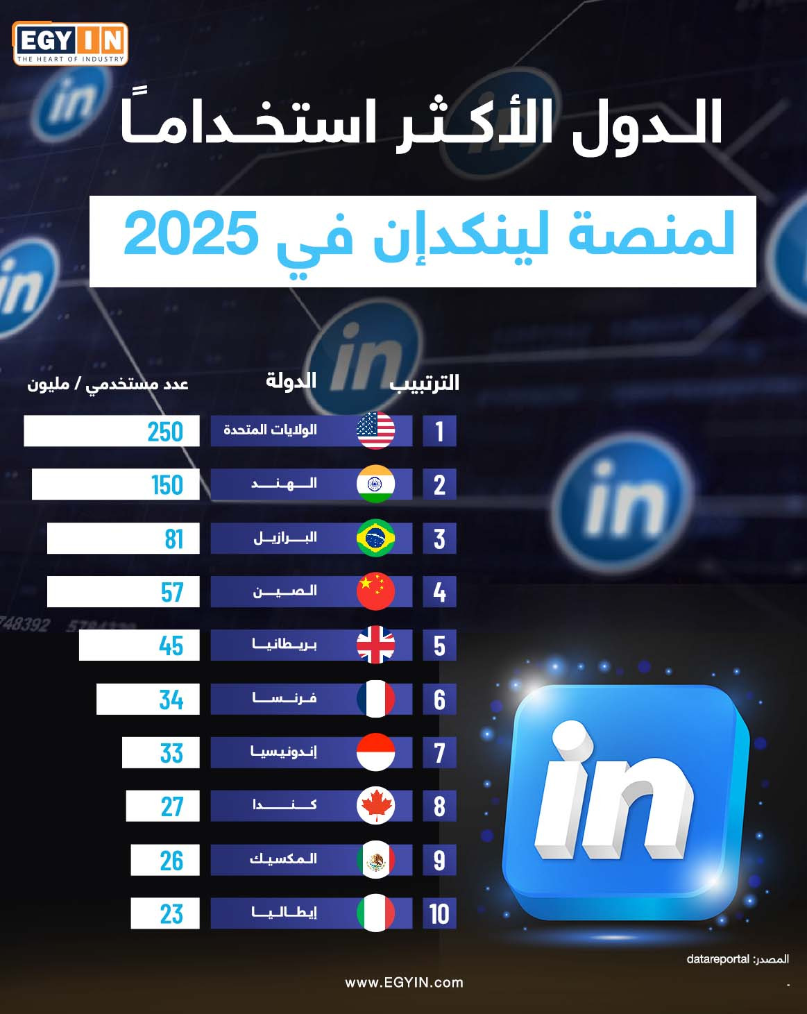أما المرتبة التاسعة فتشغلها المكسيك بعدد 26 مليون مستخدم، وهو ما يعكس توسع الاقتصاد الرقمي في أمريكا اللاتينية وزيادة اعتماد الشركات على المنصات المهنية في عمليات التوظيف.