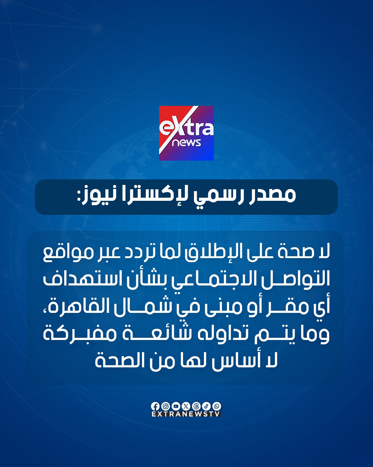 مصدر رسمي: لا صحة لاستهداف أي مقر أو مبنى في شمال القاهرة