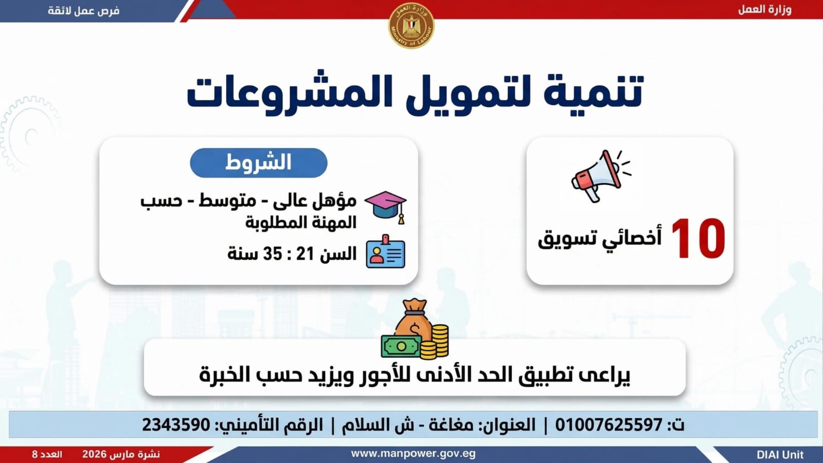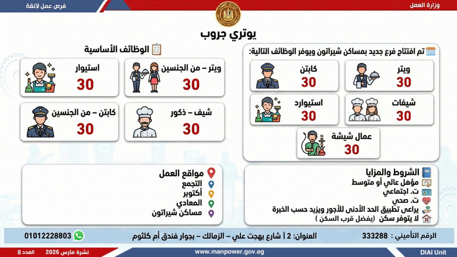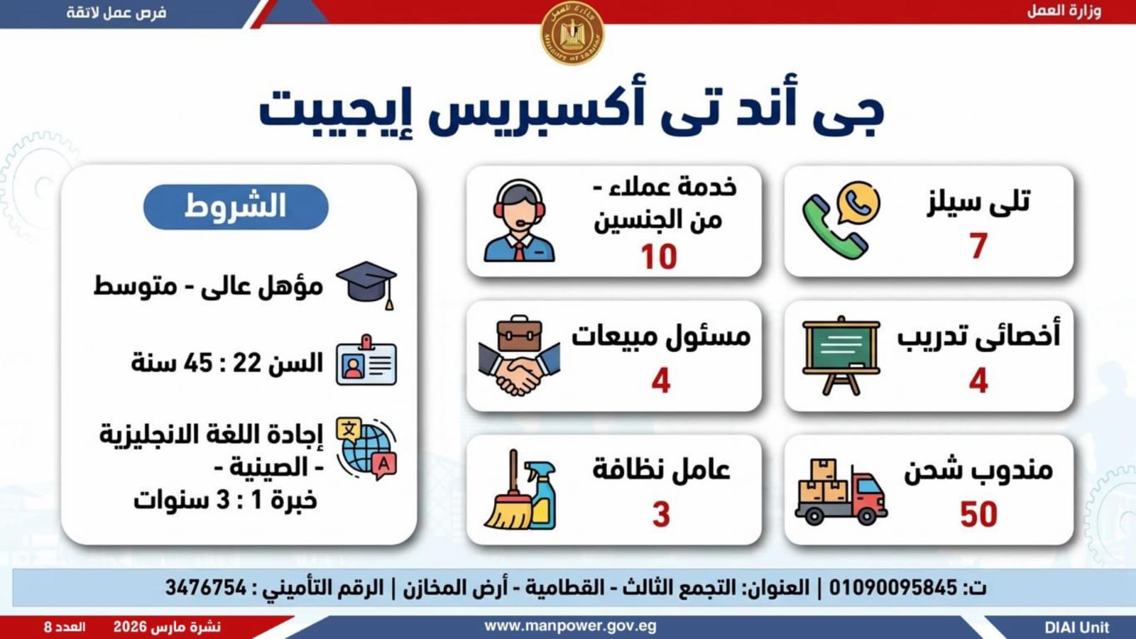 وتغطي الفرص الجديدة محافظات: القاهرة، الجيزة، الإسكندرية، الشرقية، دمياط، وبورسعيد، والغربية، والمنيا، وبني سويف.