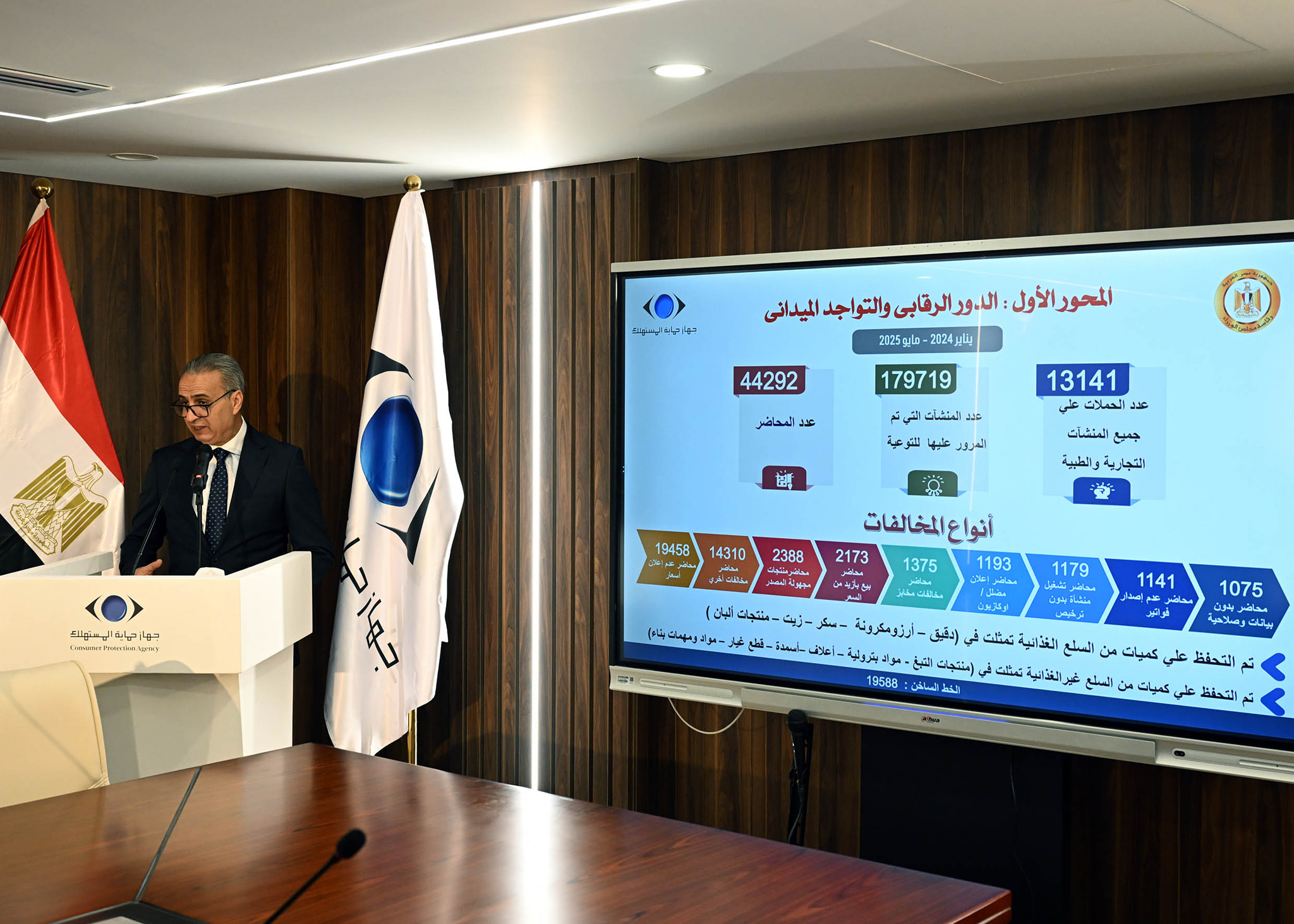 وخلال تفقده للمقر، استمع رئيس مجلس الوزراء لشرح من إبراهيم السجيني، رئيس الجهاز، الذي أوضح أن إنشاء هذا المقر بالقاهرة الجديدة جاء بهدف التوسع، حيث يقام على مساحة كلية تبلغ نحو 5 آلاف م2، ومقسم إلى ثلاثة طوابق كما أنه مُجهز وفقاً لأحدث المعايير العالمية، حيث يضم المقر الرئيسي مختلف قطاعات وإدارات الجهاز، من بينها إدارة الشكاوي، وإدارة ضبط الأسواق، وإدارة التحريات والتحقيقات التي تقوم بالتحقق والفحص الفوري لشكاوى المواطنين، واتخاذ الإجراءات اللازمة، وتعمل على تحقيق نتائج تبدأ بإزالة أسباب الشكوى، وتصل إلى إحالة المخالفين للنيابة العامة، مع التأكيد على متابعة سير العملية لضمان الالتزام بأعلى معايير الجودة، بالإضافة إلى إدارة الإعلانات المُضللة والمرصد الإعلاني.