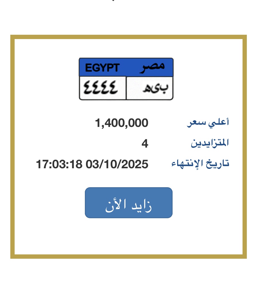 سعرها يبدأ من مليون و400 ألف، منافسة شرسة على لوحة «بيه 4444» بمزاد المرور